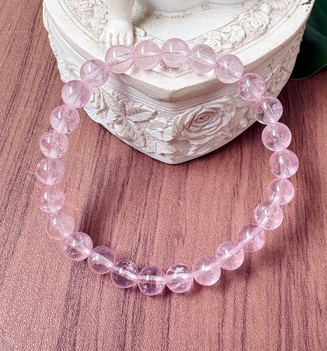 ~初めに~ ABOUTの内容をお読み頂きよく確認してからご購入下さいませ。 ☆もちろん氣入れをしてお届けいたします!! 愛と優しさを象徴する石! 淡いピンクがとても可愛らしいモルガナイトのブレスレットです。 4月の誕生石なので、4月生まれの方は石から更にパワーをいただけるでしょう。 モルガナイトはアクアマリンと同じベリル系の石でかつてはピンクアクアマリンと呼ばれていました。 1911年に発見された比較的新しい石です。 ・愛と優しさを育む ・恋人、家族との愛を深める ・恋愛成就 ・結婚運 ・家庭円満 ・自分自身を愛する ・女性らしい魅力を高める 【商品仕様】 石の大きさ 約7.5〜8mm 内径 約17cm サイズ調整ご相談ください。大きくする場合は別途玉代がかかります。 ※在庫よりランダムに発送します。 ※天然物の加工の為、表面に小さな凹凸や小さなキズ、穴などが存在する場合がございます。ご了承のうえご注文お願い致します。 ※色の具合や模様は変わります。 ※モニター環境によって多少の色の違いがありますことをご了承くださいませ。