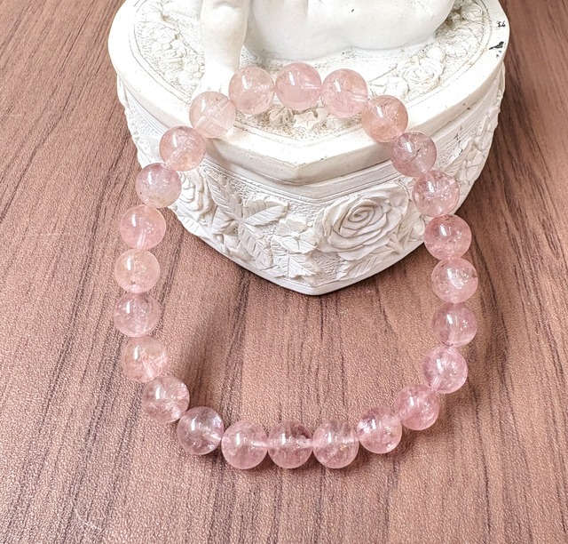 ~初めに~ ABOUTの内容をお読み頂きよく確認してからご購入下さいませ。 ☆もちろん氣入れをしてお届けいたします!! 愛と優しさを象徴する石! 淡いピンクがとても可愛らしいモルガナイトのブレスレットです。 4月の誕生石なので、4月生まれの方は石から更にパワーをいただけるでしょう。 モルガナイトはアクアマリンと同じベリル系の石でかつてはピンクアクアマリンと呼ばれていました。 1911年に発見された比較的新しい石です。 ・愛と優しさを育む ・恋人、家族との愛を深める ・恋愛成就 ・結婚運 ・家庭円満 ・自分自身を愛する ・女性らしい魅力を高める 【商品仕様】 石の大きさ 約7.5〜8mm 内径 約16.5cm サイズ調整ご相談ください。大きくする場合は別途玉代がかかります。 ※在庫よりランダムに発送します。 ※天然物の加工の為、表面に小さな凹凸や小さなキズ、穴などが存在する場合がございます。ご了承のうえご注文お願い致します。 ※色の具合や模様は変わります。 ※モニター環境によって多少の色の違いがありますことをご了承くださいませ。