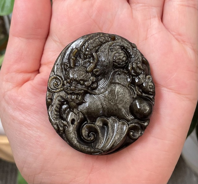新着★魔除け!開運!★龍彫 ゴールデンオブシディアン☆プレート