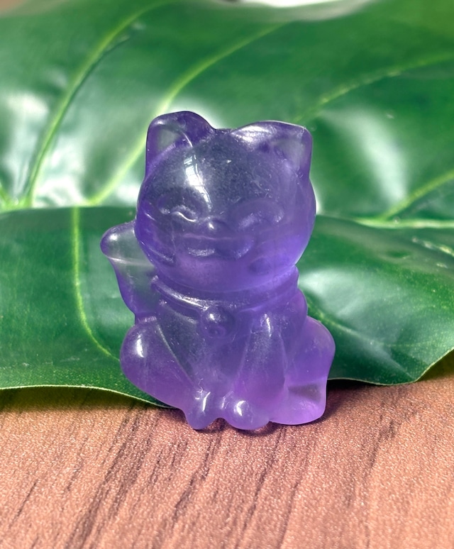 新着★幸運を運ぶ!商売繁昌!★招き猫★フローライト彫刻☆小サイズ