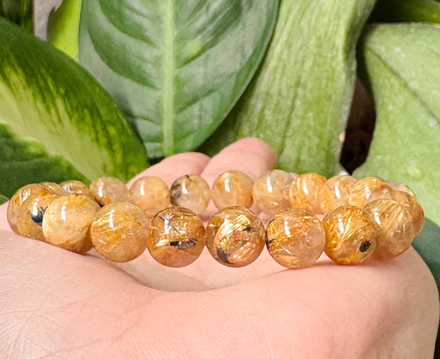 ルチル結晶の母岩となるヘマタイトから結晶が伸びる根本の部分のみを使用した希少なブレスレットです!