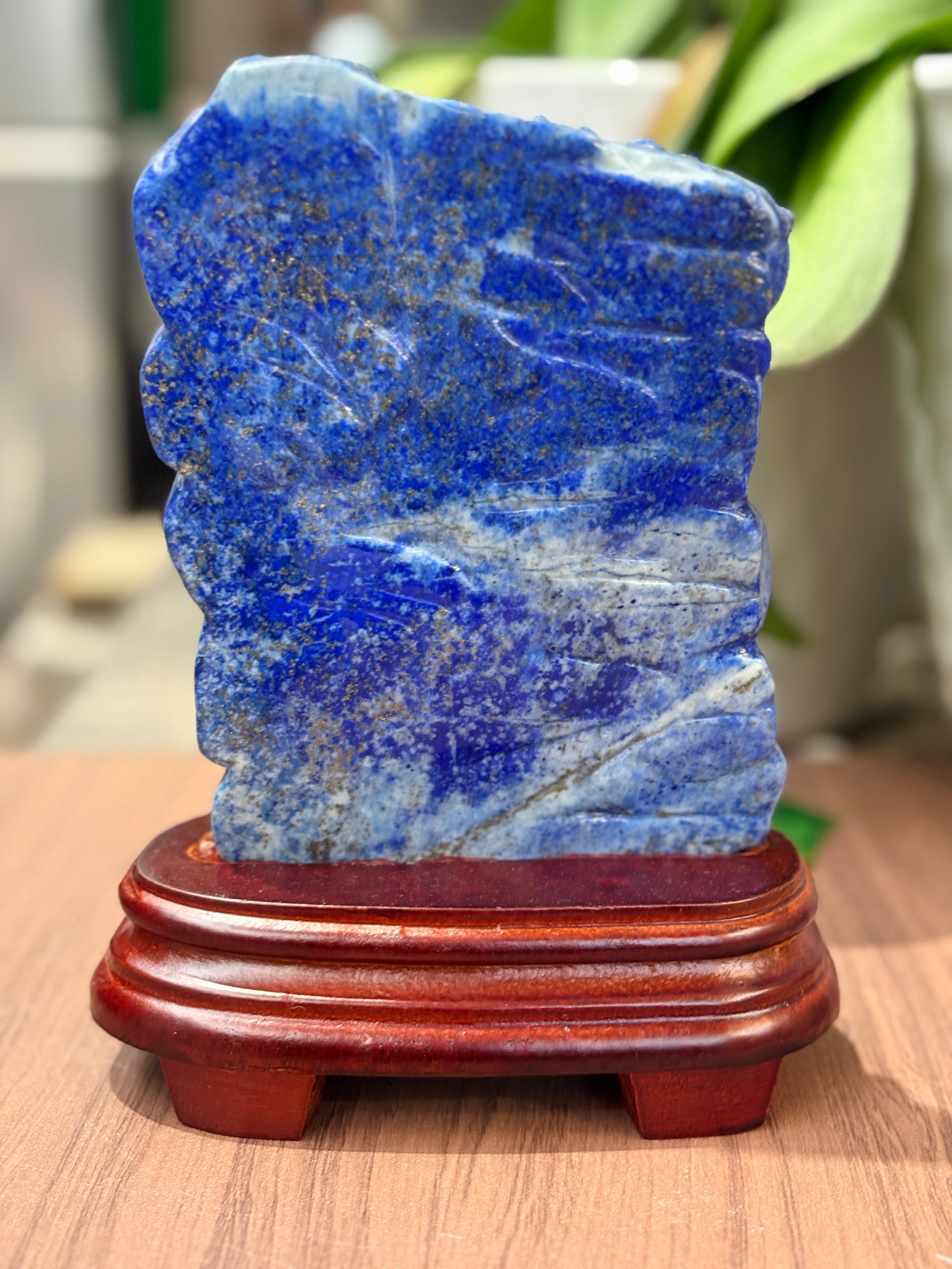 新着★開運!幸運を運ぶ!★龍彫りラピスラズリ置石(台座付き)