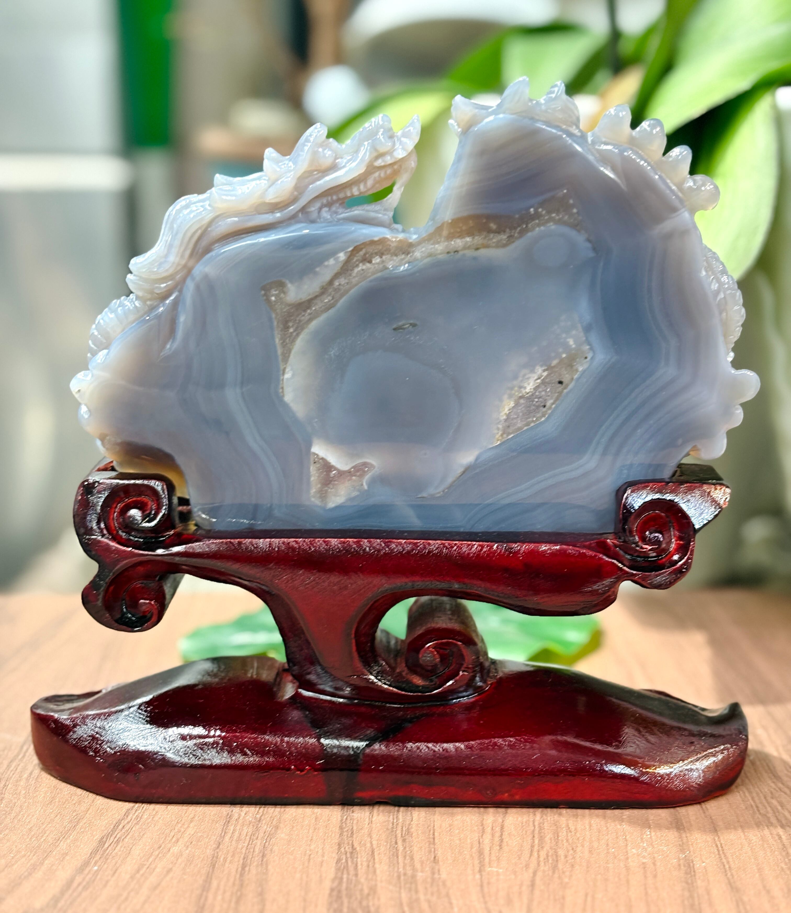 新着★幻想的な逸品!★開運!健康長寿!★天然アゲート龍神一刀一石彫り(台座付き)