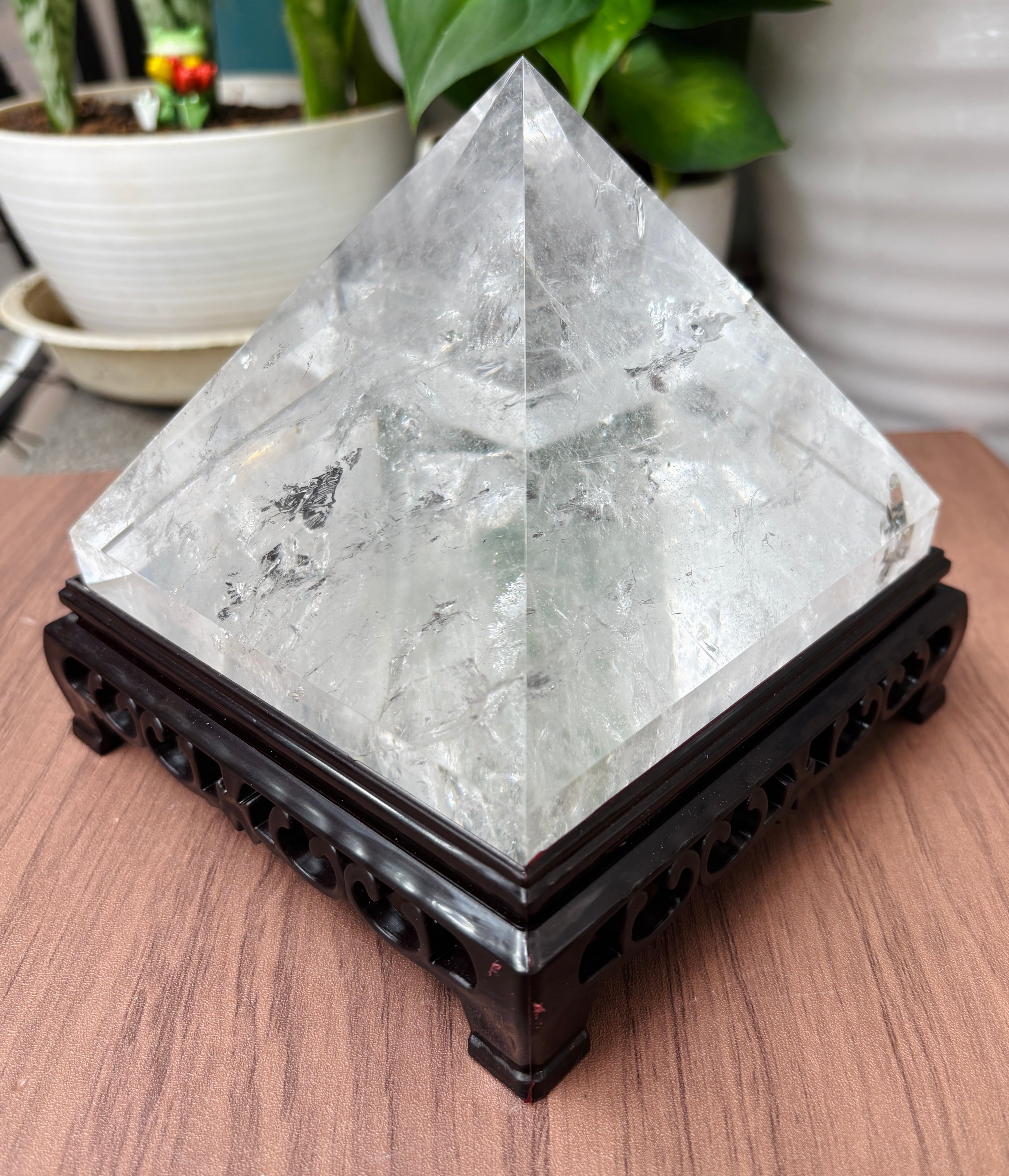 お部屋に置いておくだけで、空間の浄化や良い気を集め開運へ導く高パワー水晶のピラミッド(台座付き)です。
