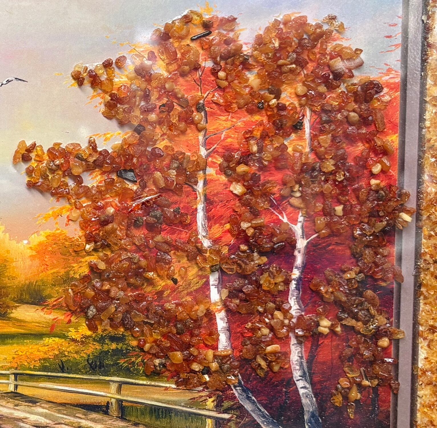 金運・人気運・健康運などあらゆるエネルギーの循環がUPするバルト海産の「アンバー(琥珀)」のさざれを贅沢に使用したインテリア絵画(額入り)です。