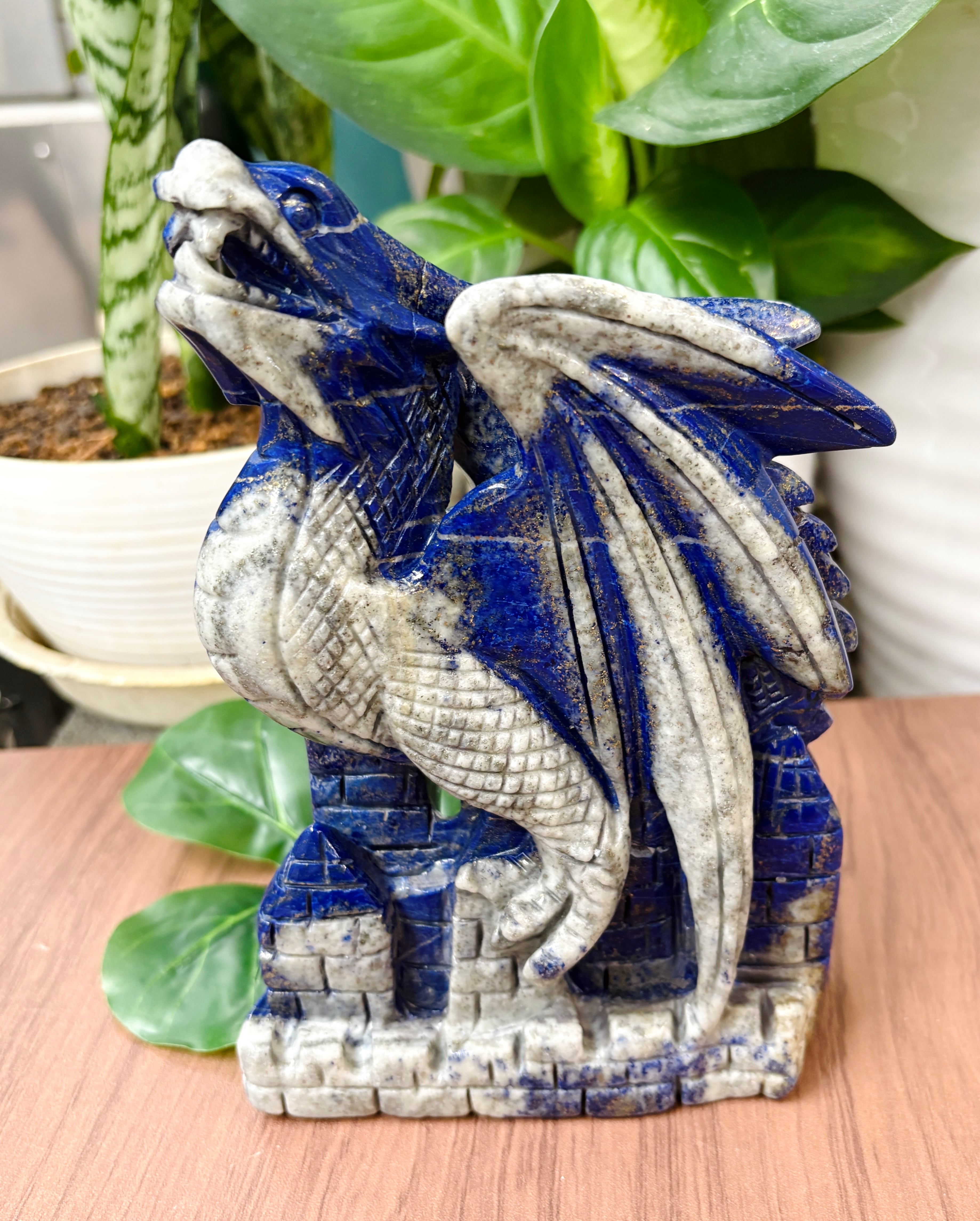 新着★開運!幸運を運ぶ!★ラピスラズリ☆ドラゴン彫刻置石