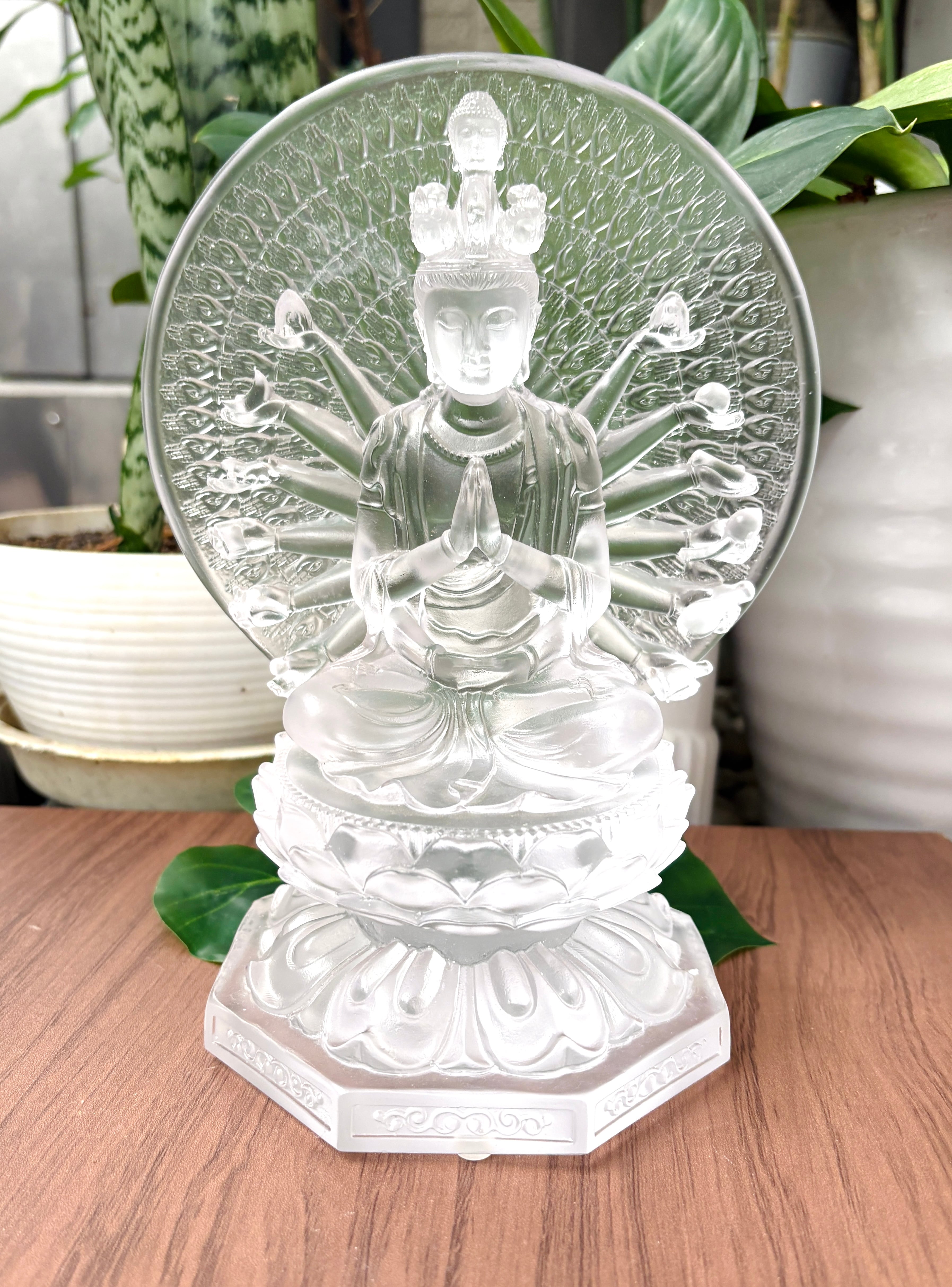 新着★厄除!病気平癒!恋愛成就!★ガラス製☆千手観音座像