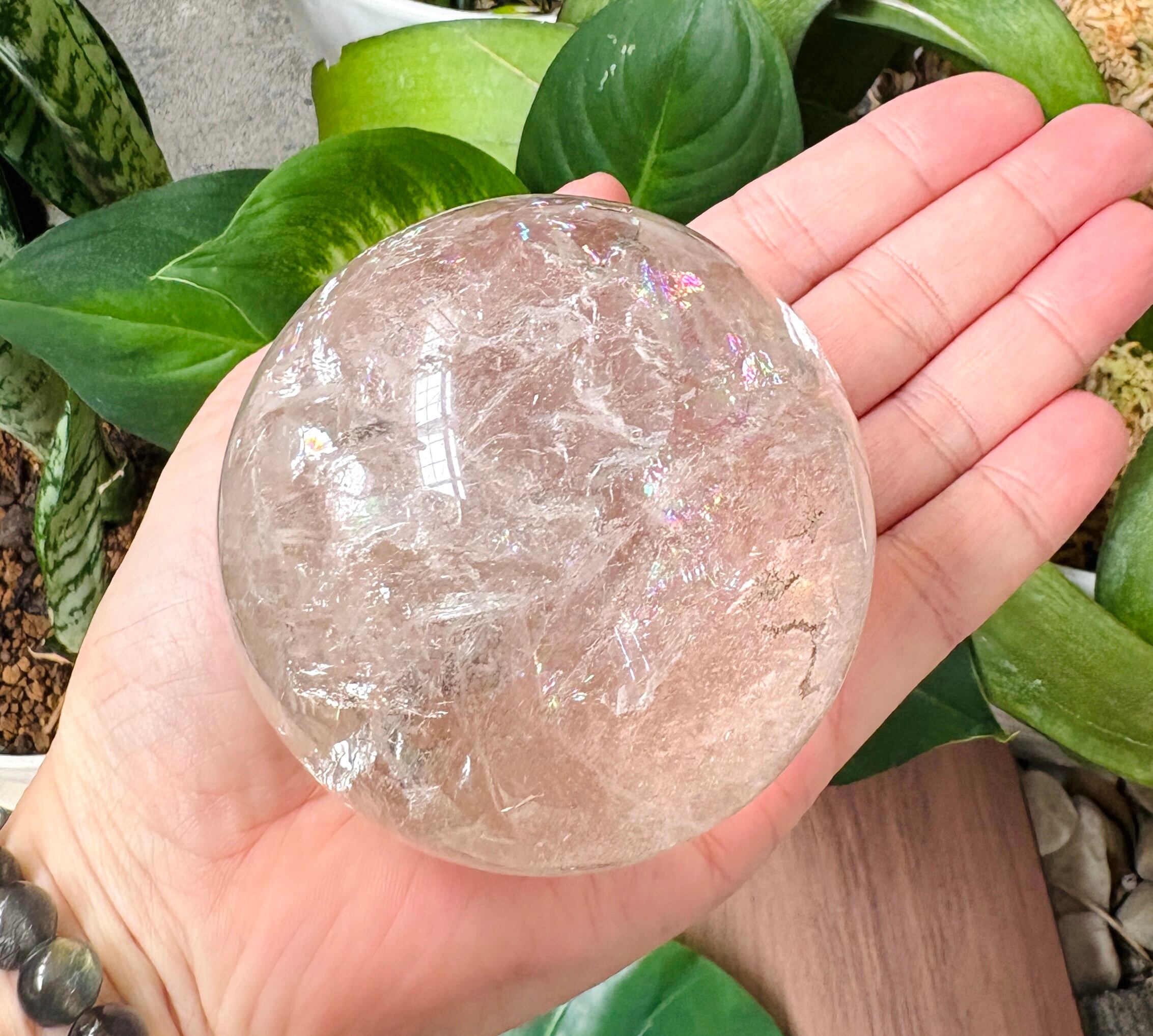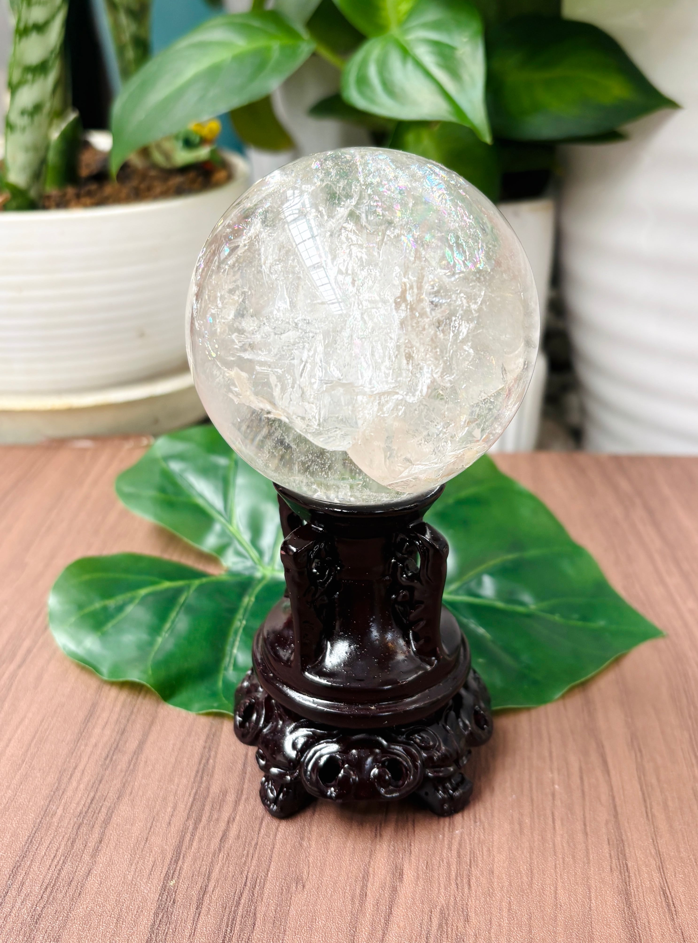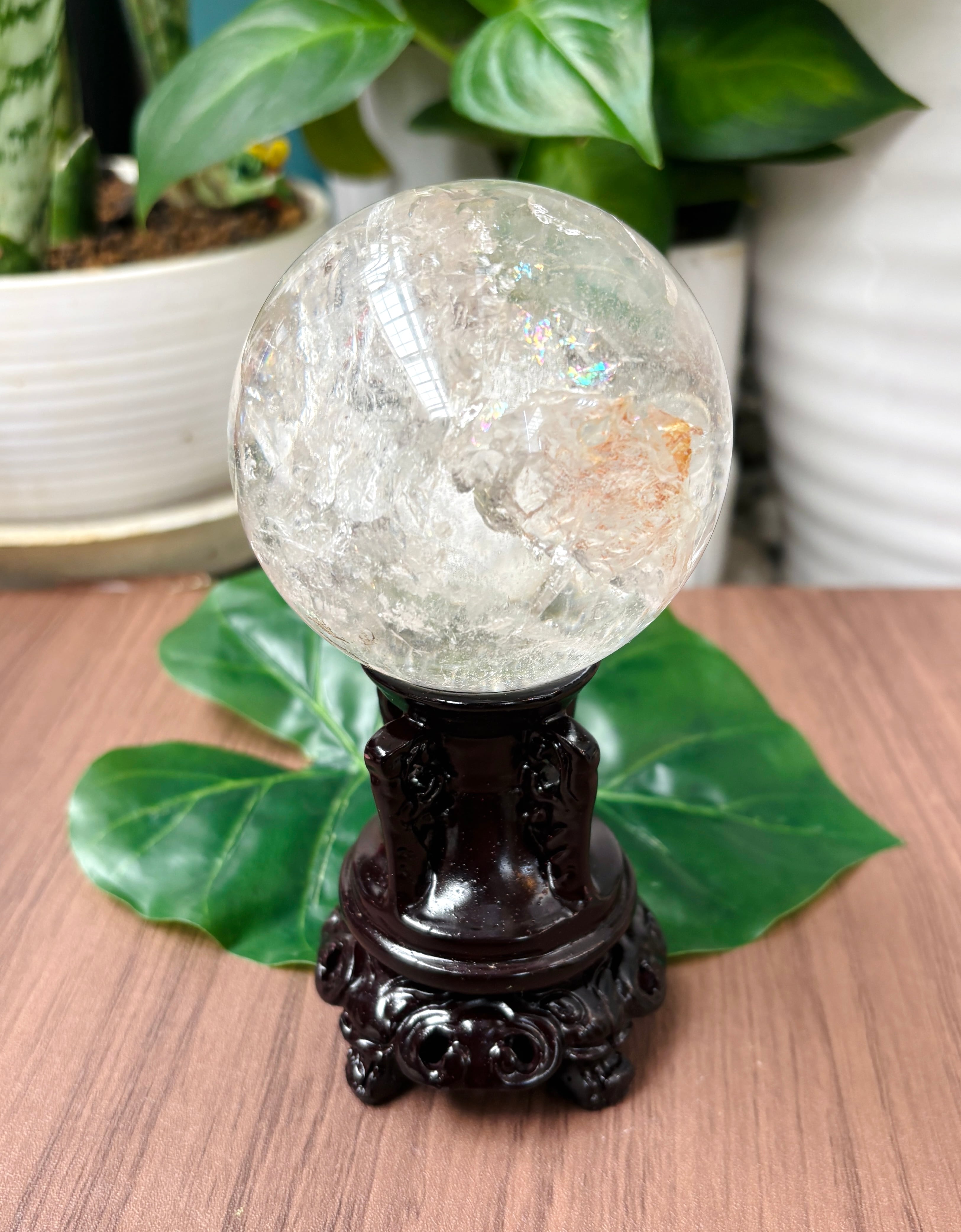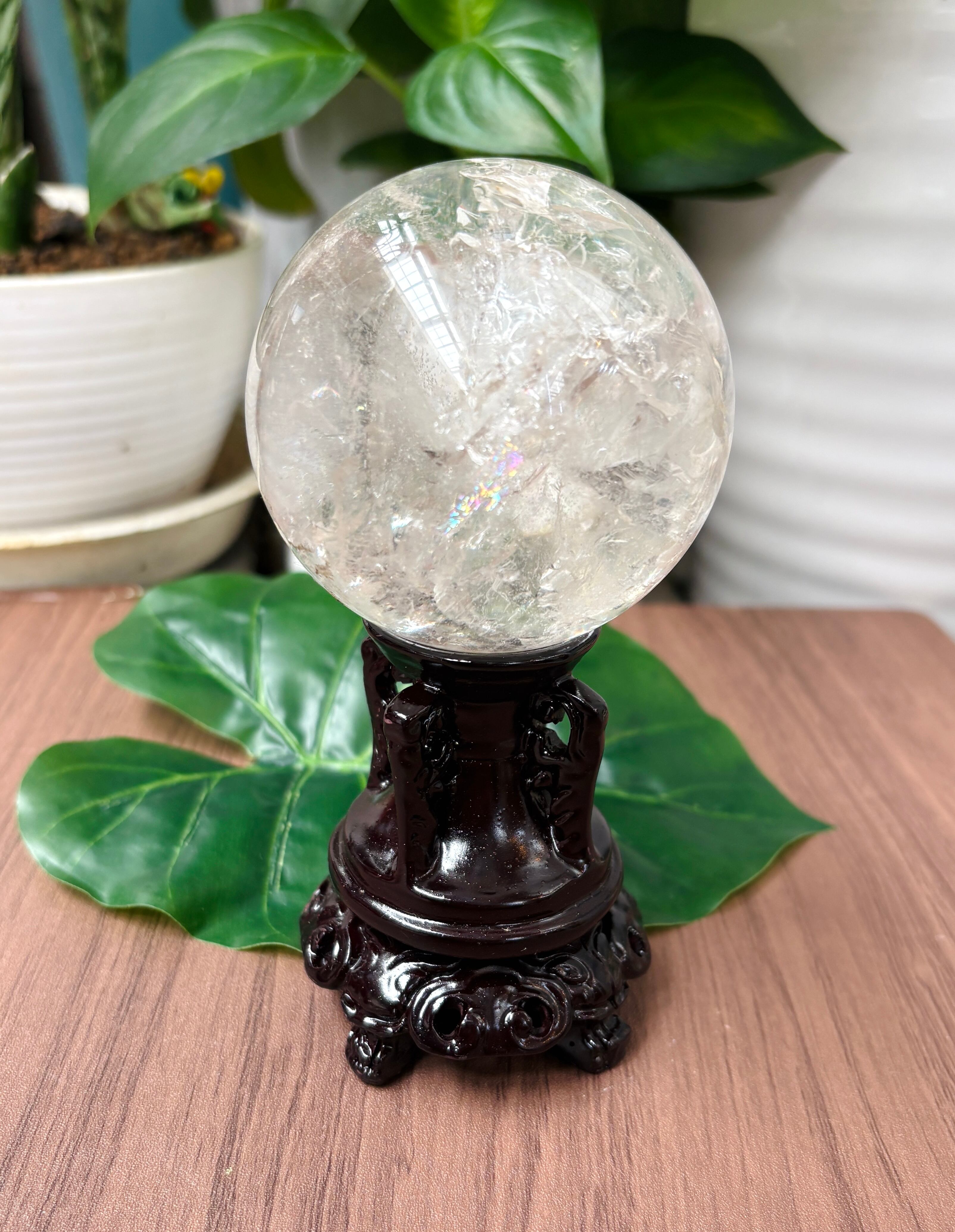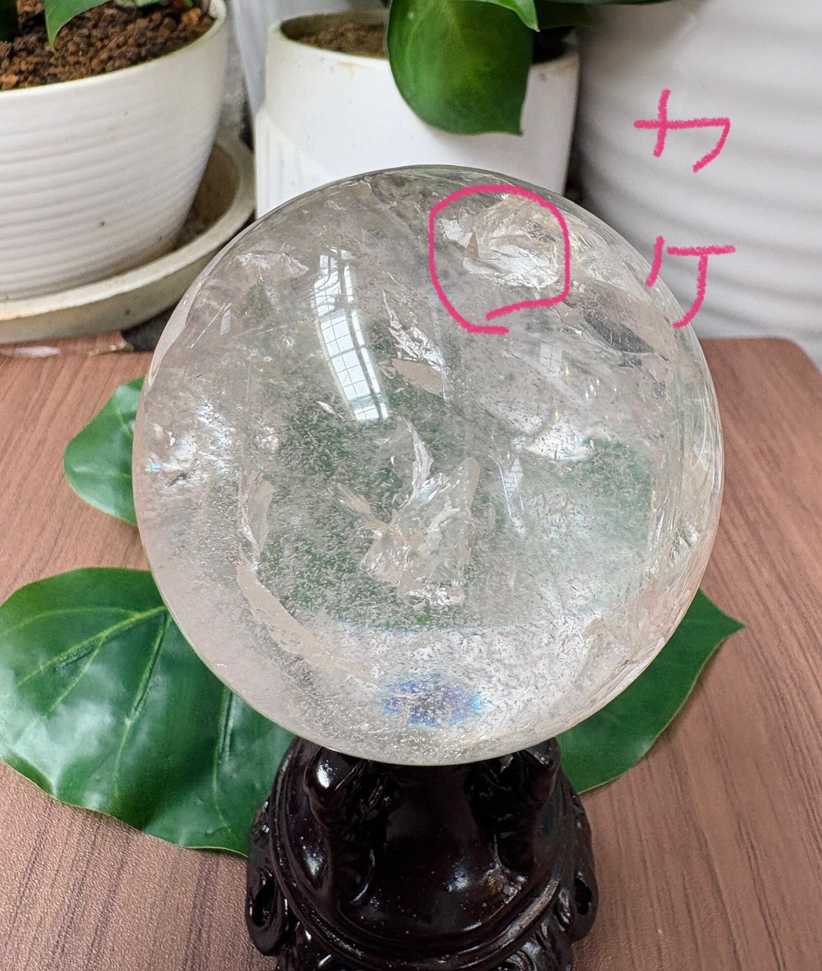 虹がキラキラ!!天然レインボー水晶丸玉(台付き)です!