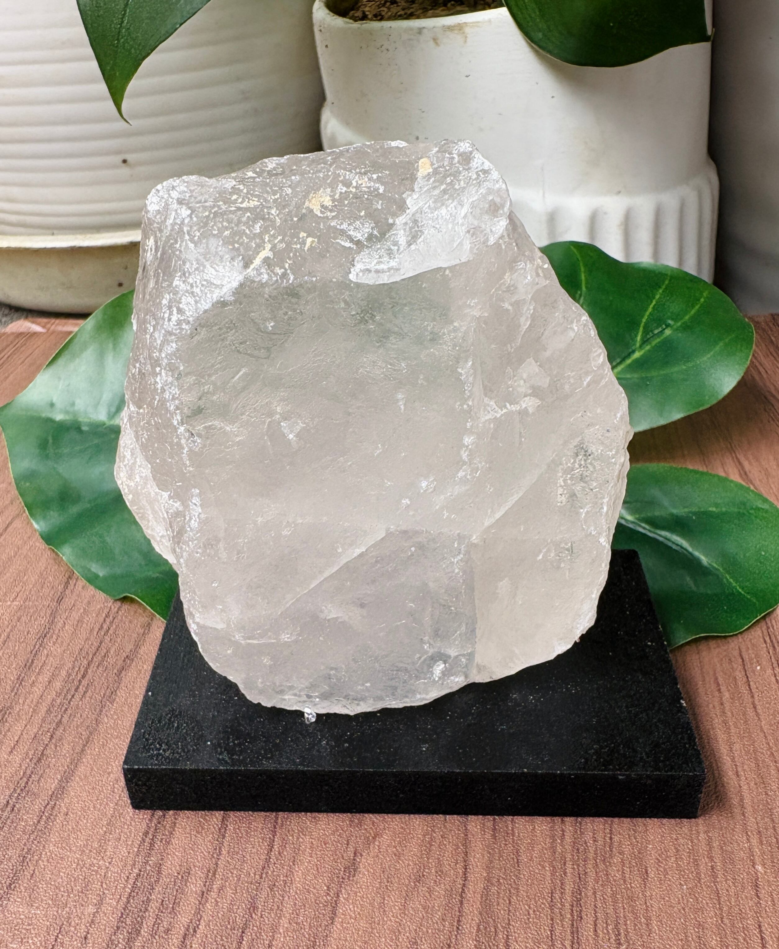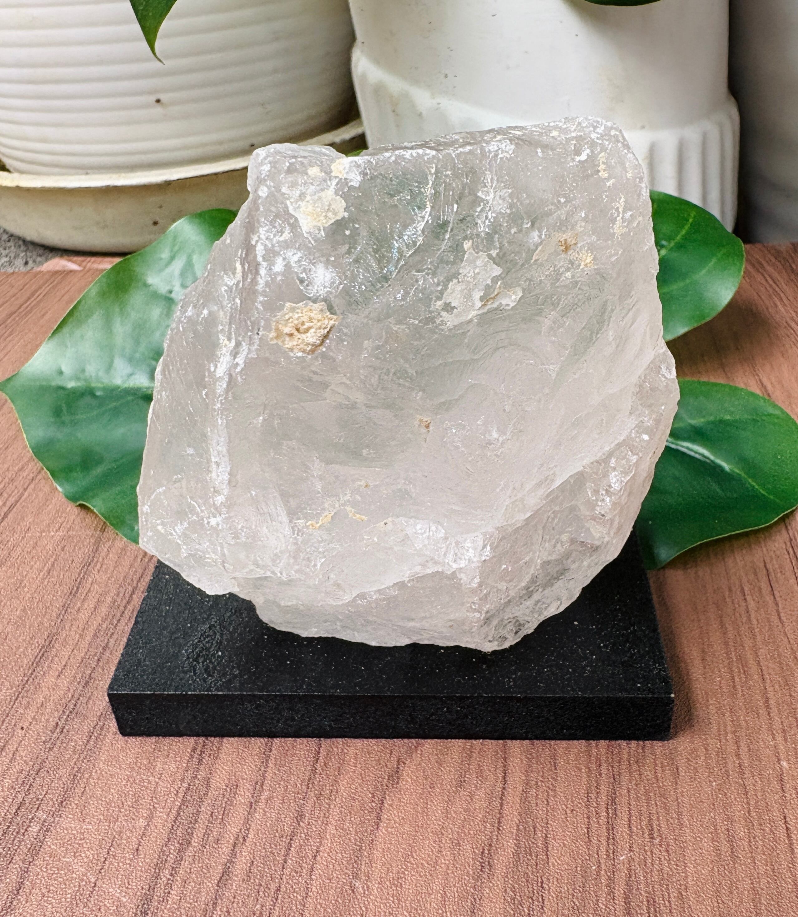天然水晶原石が台座に固定されていてそのまま飾ることができます。