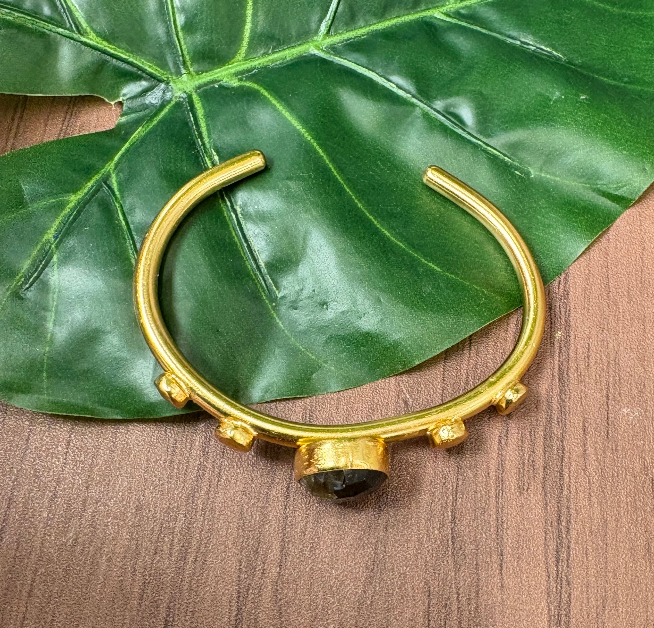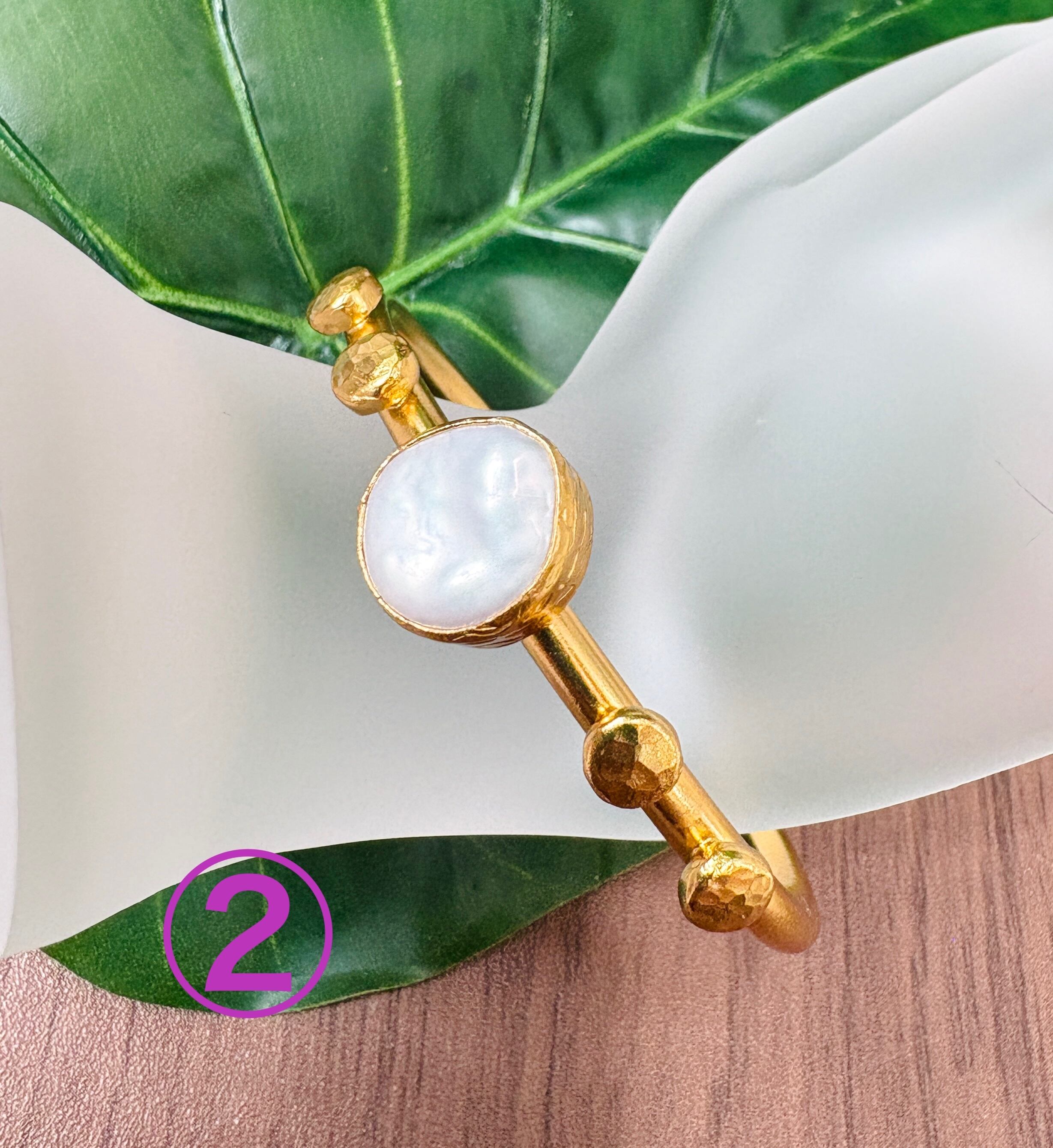 ひとつひとつ職人の手仕事によって作られており、真鍮に22ゴールドをメッキした素材に、ラブラドライトとパールを使用した存在感抜群のバングルです!!真鍮は銅と亜鉛の合金で耐食性にすぐれた性質をもっています。