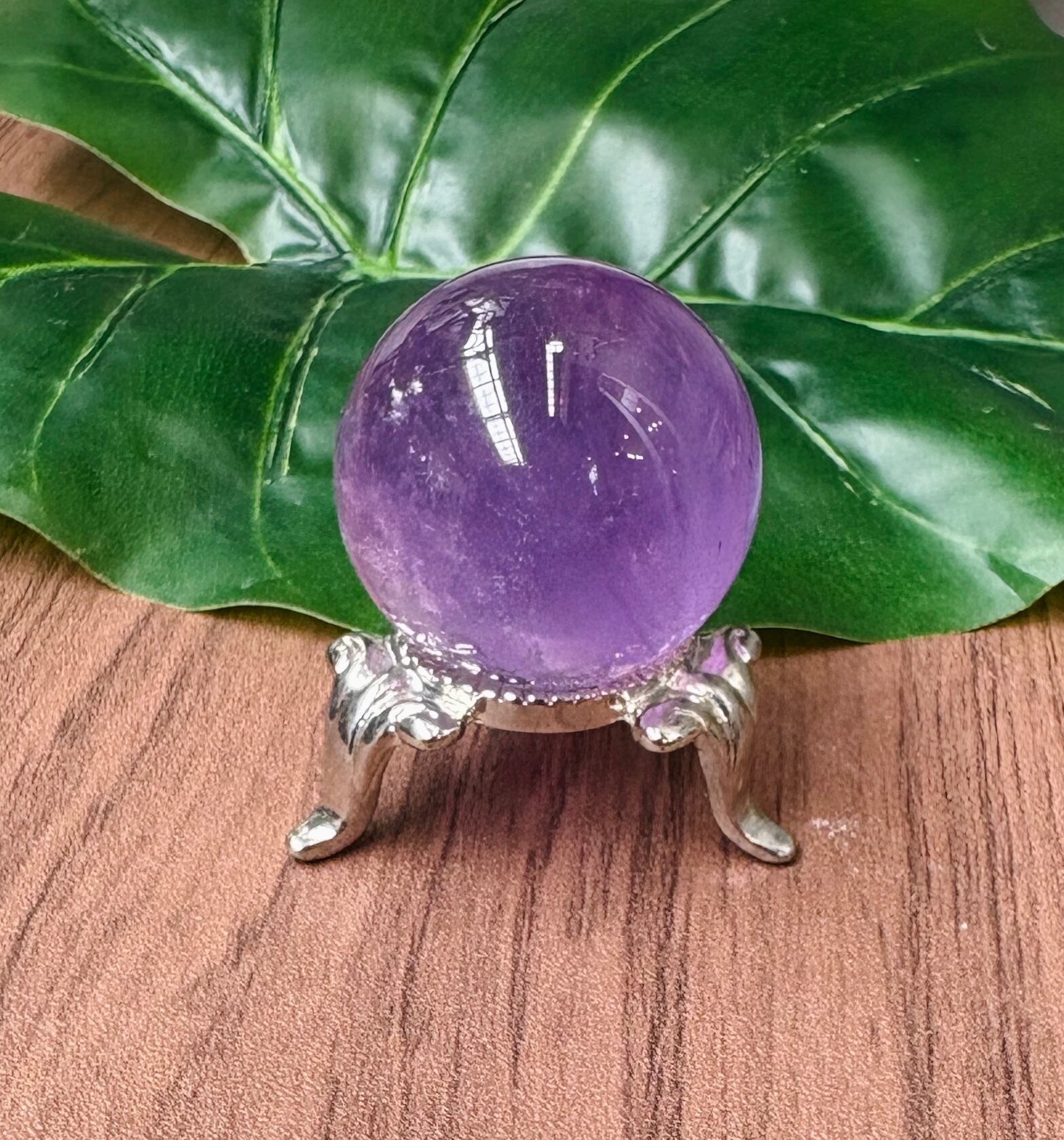 ラベンダーアメジストの丸玉(台付き)です。