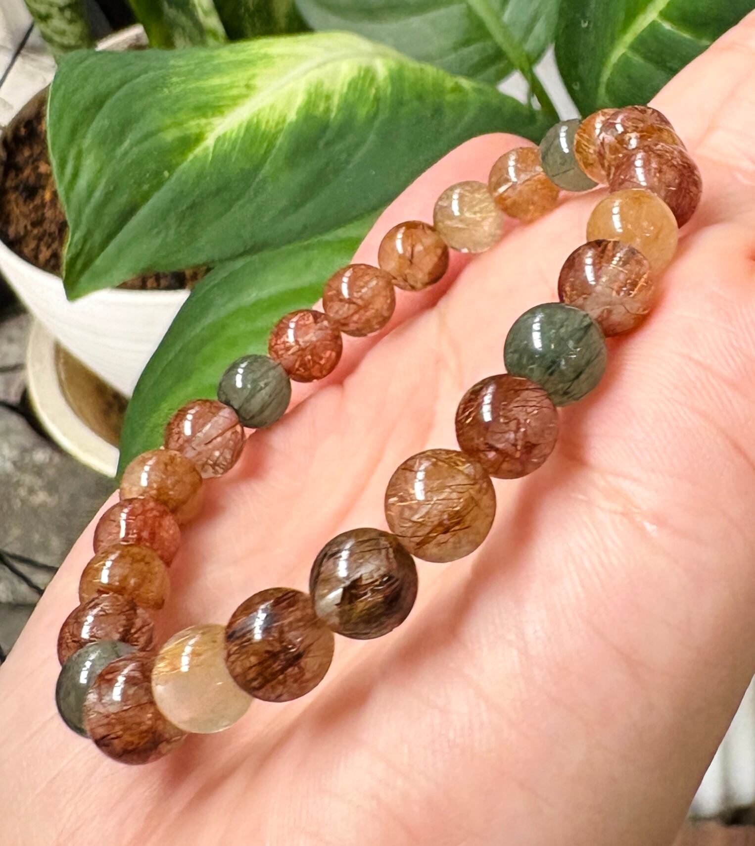 新着★全ての願望を叶える福禄寿★ミックスルチルクォーツ☆ブレスレット☆7.5mm玉