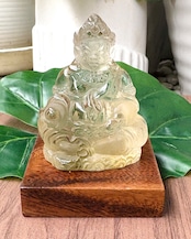 太陽のエネルギーを持つシトリンに彫られたチベット密教の黄財神(こうざいしん)の置物(台座付です。