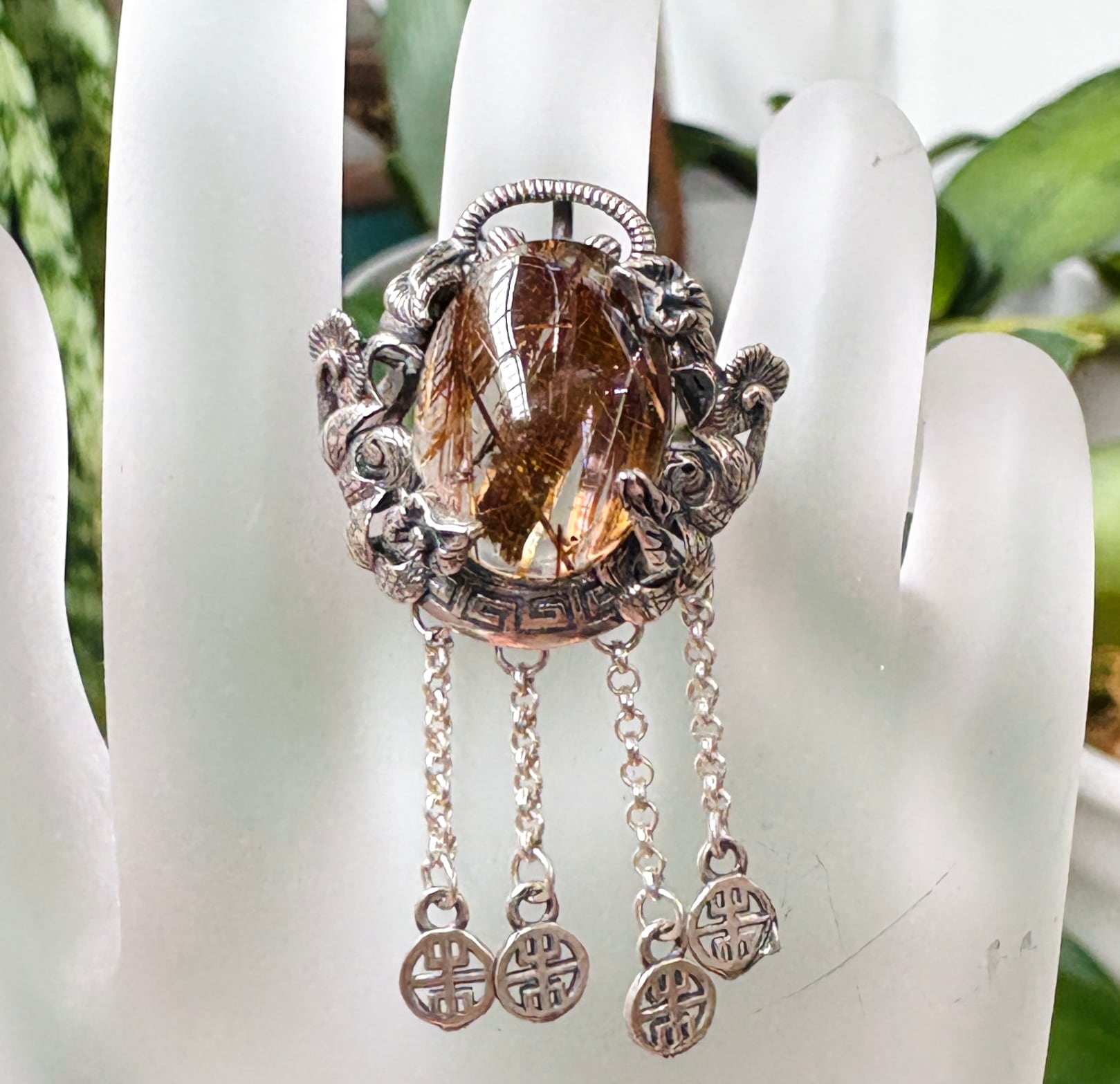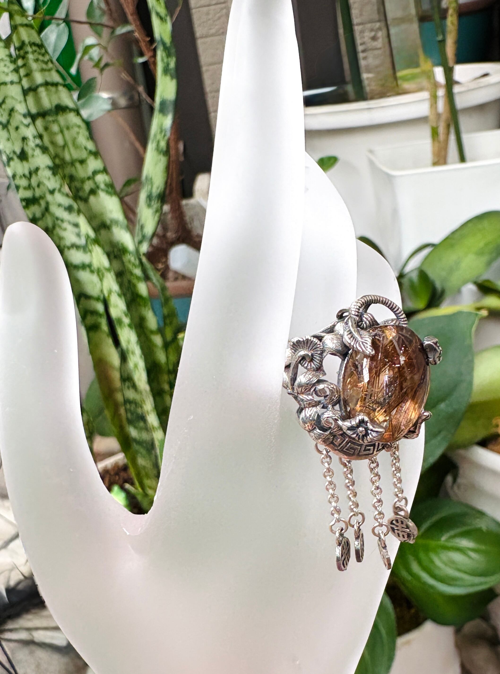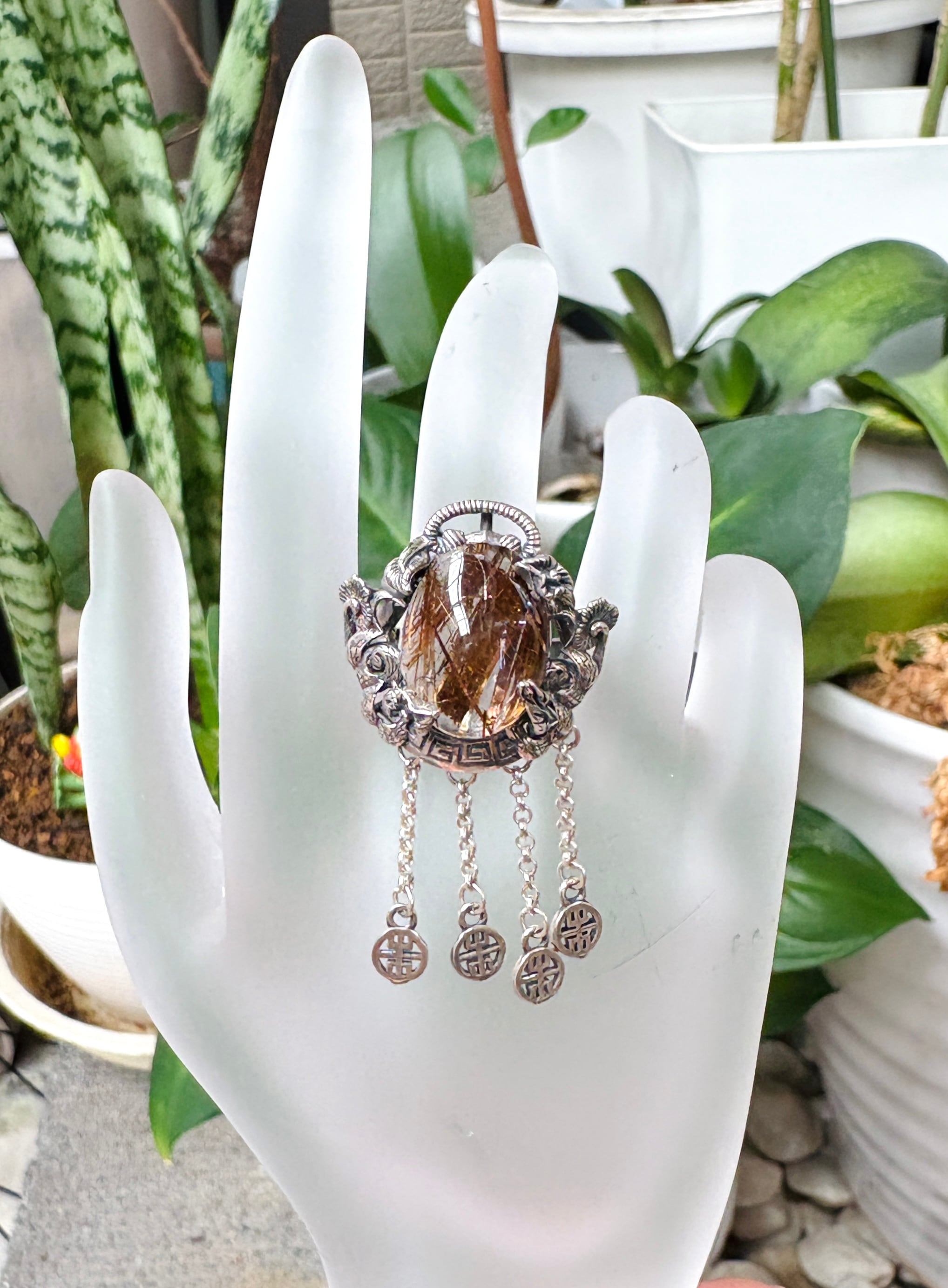 新着★存在感抜群!★金運UP!事業の安定!★ブロンズルチルクォーツ☆リング☆約15号