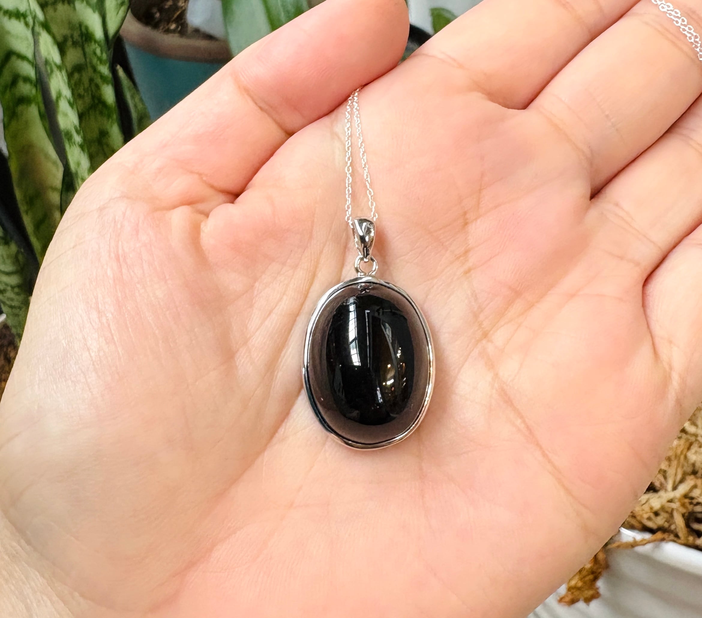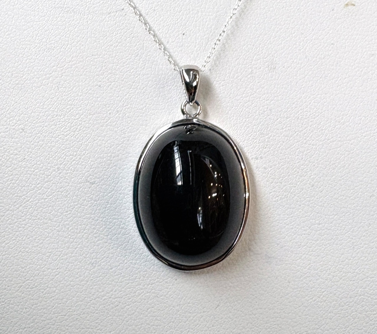 吸い込まれそうな漆黒色の良質なモリオンのペンダントトップです。(チェーン別売)