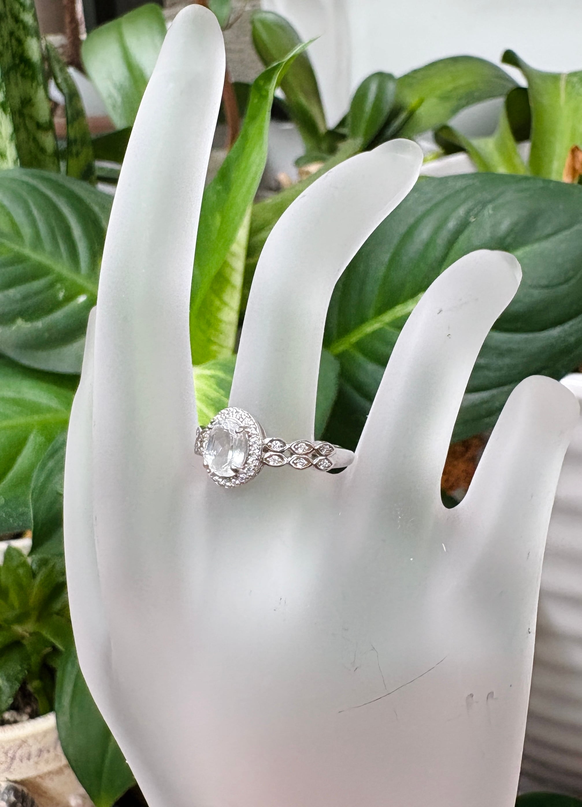 透明度があり、レインボーのシラー効果が美しい高パワー!レインボームーンストーン(ホワイトラブラドライト)のリング(約14号~フリーサイズ)です。
