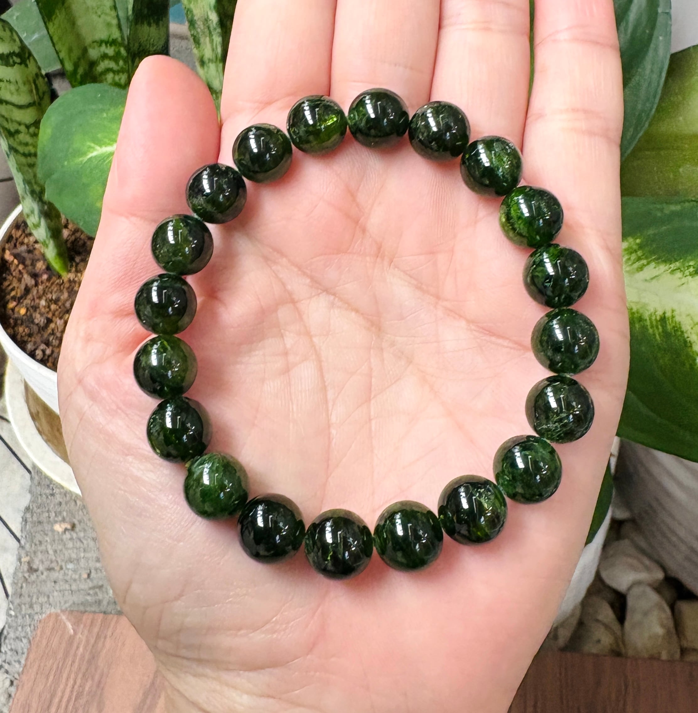 鮮やかな透き通るグリーンが大変美しいクロムダイオプサイトのブレスレットです。