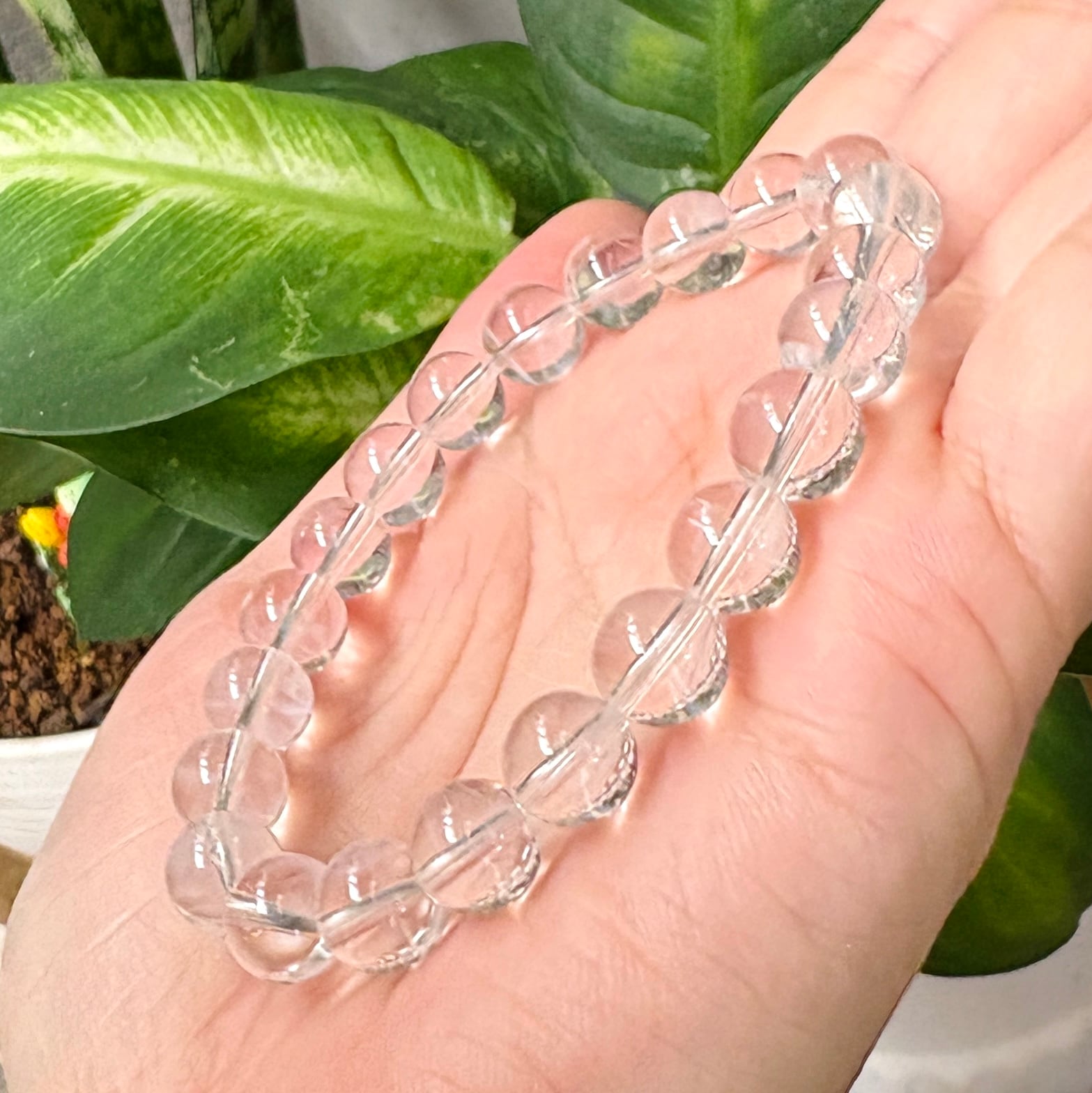 水晶にまるでふわっと天使の羽が舞い降りたようなエンジェルフェザークォーツの最高級ブレスレットです。水晶の成長構造によって自然に生まれた石です。