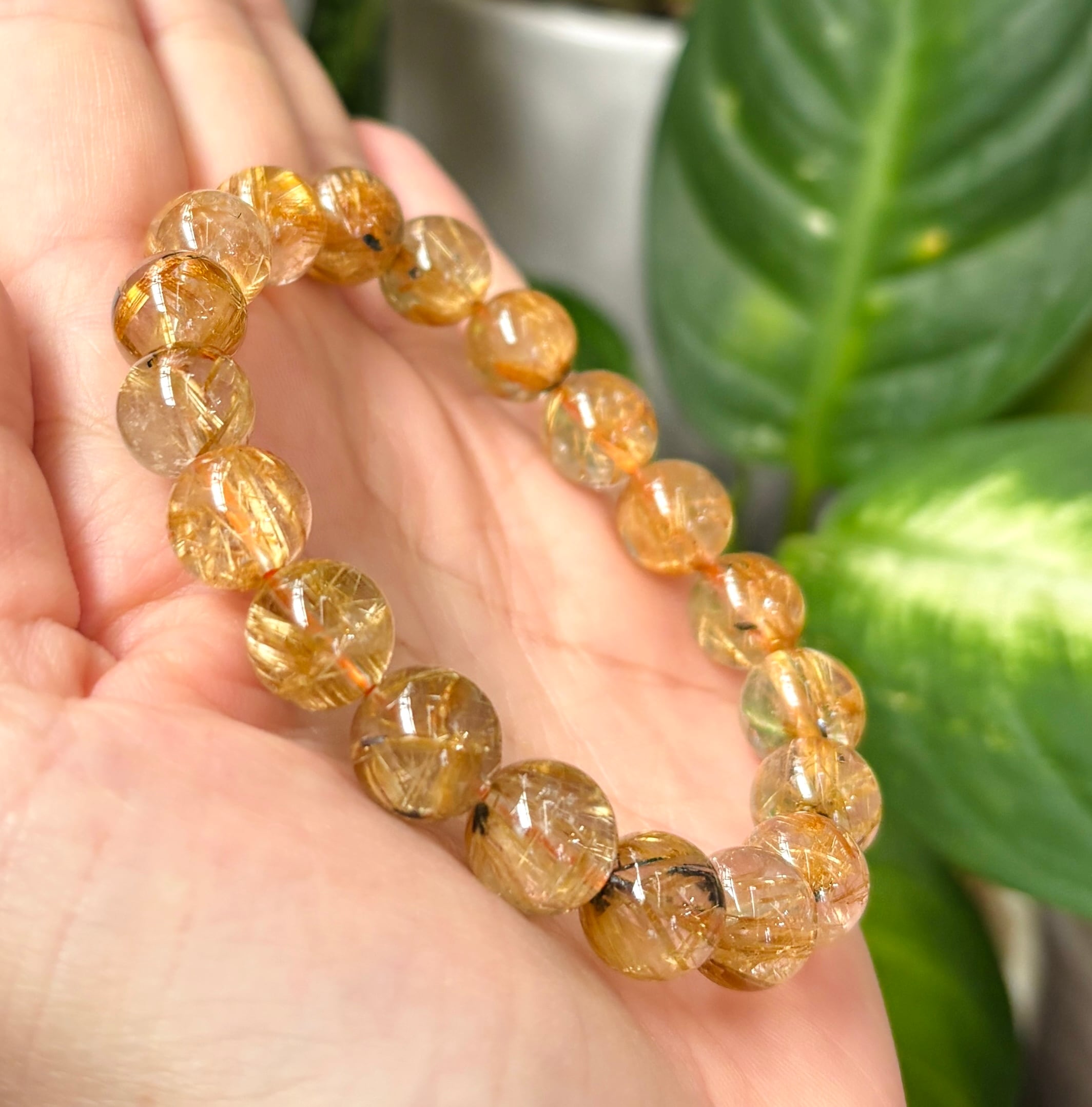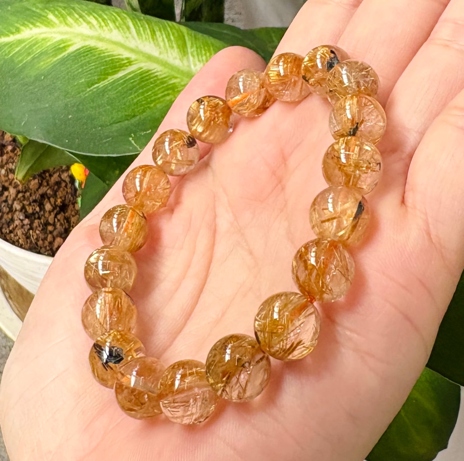新着★金運上昇!★ヘマタイト入り!ゴールドルチルクォーツ☆ブレスレット☆10mm玉