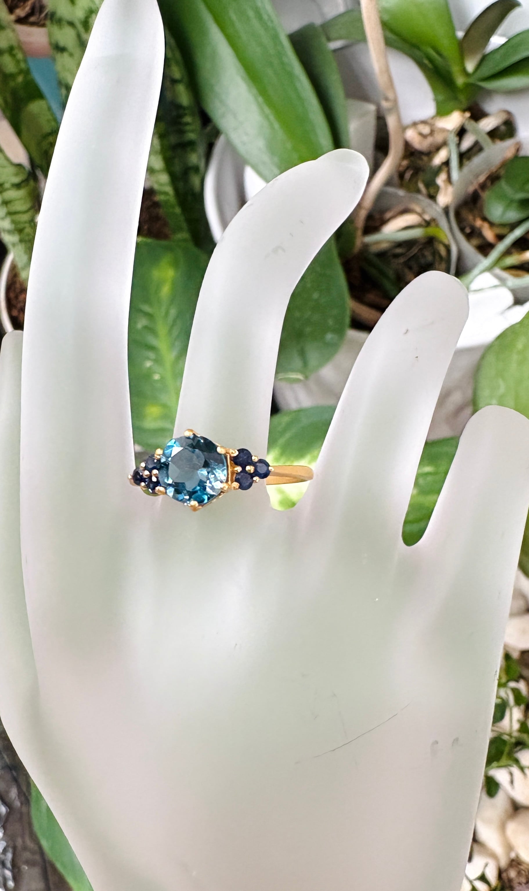 透明度の高い人気の宝石質ブルートパーズの周りにサファイアを贅沢に使ったリングが入荷しました!