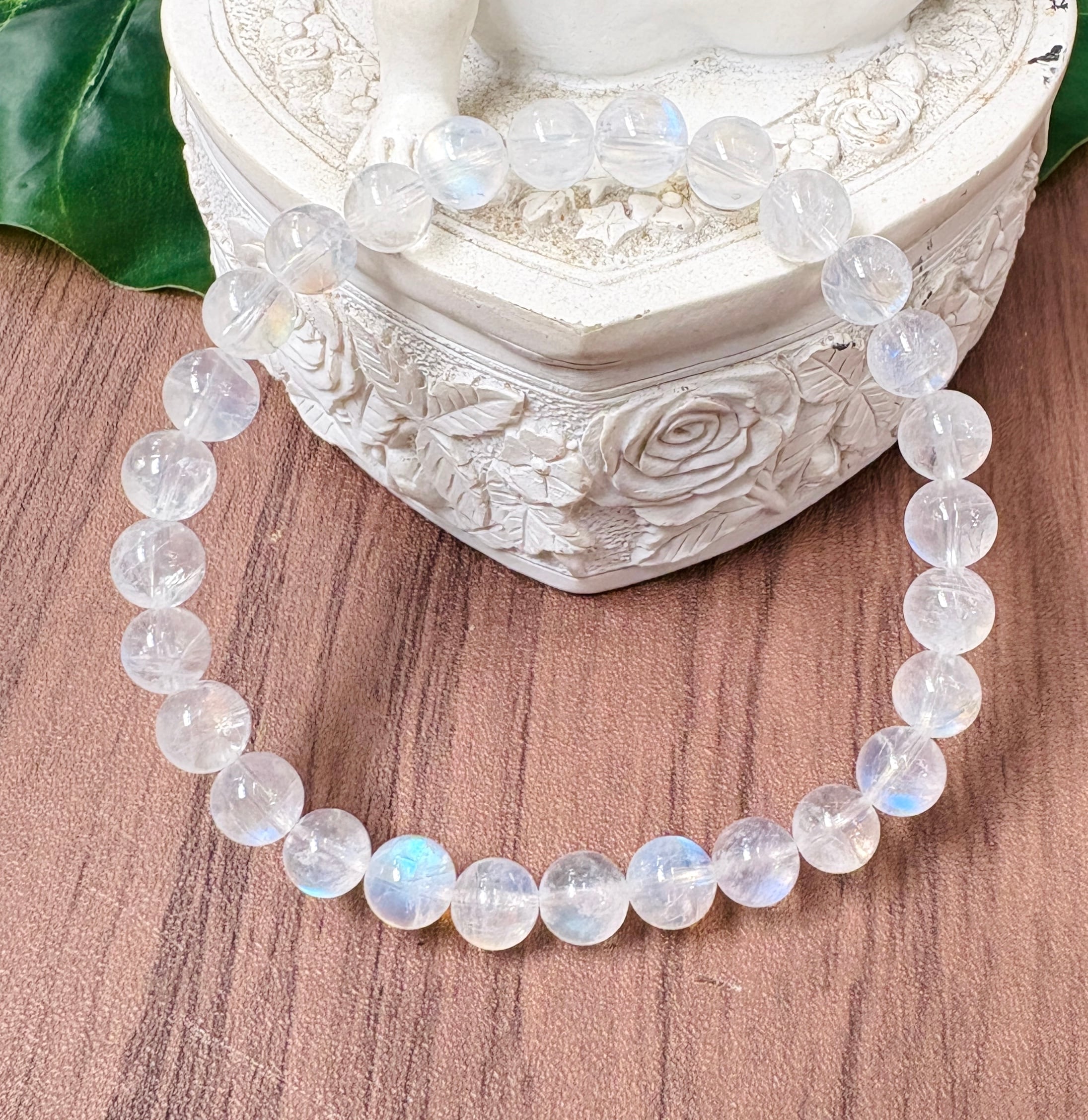新着★心を癒し直感を高める石!★ホワイトラブラドライト(レインボームーン)ブレスレット★6.5mm玉