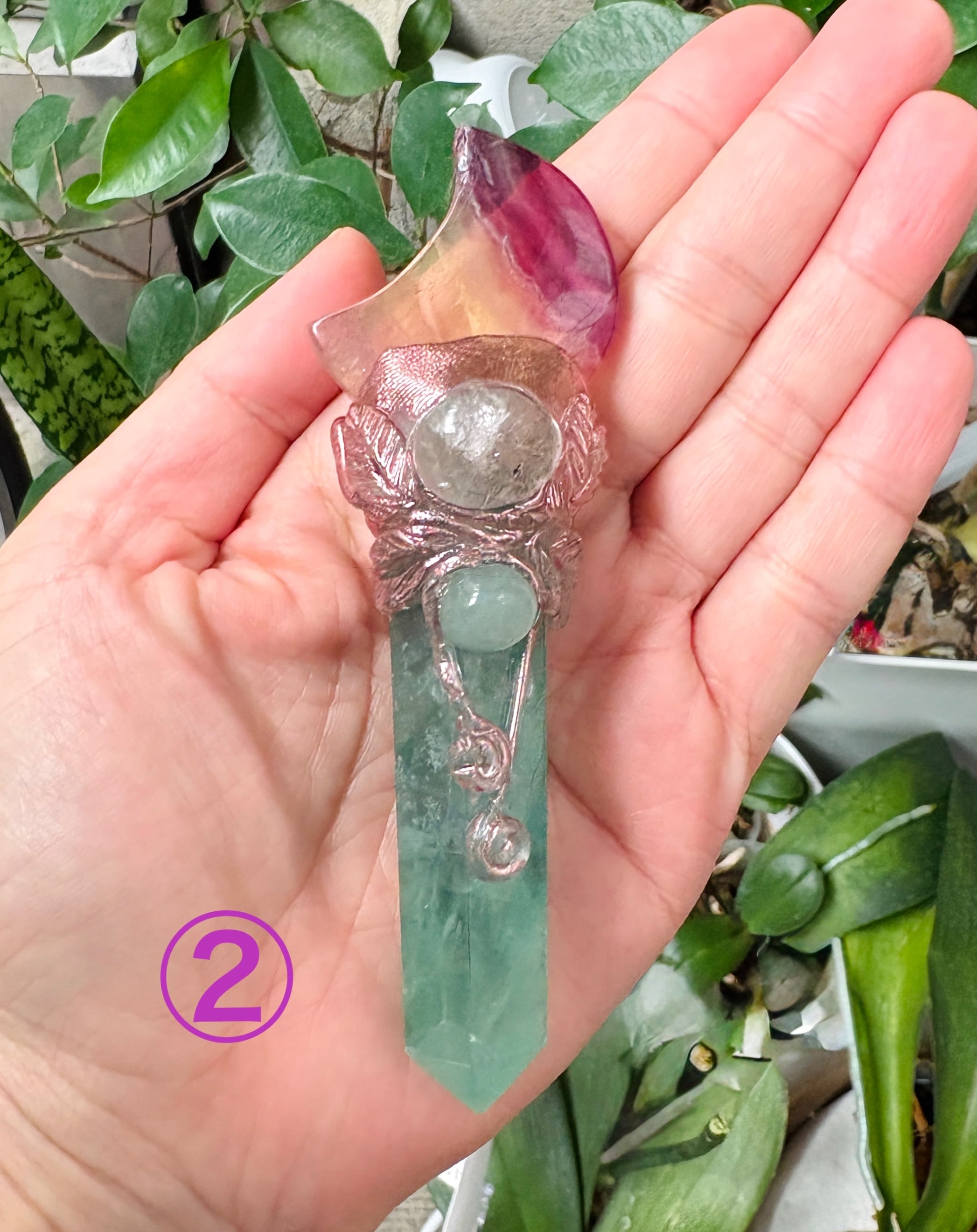 それぞれのワンドの上部にはフローライトのハートと月がついています。