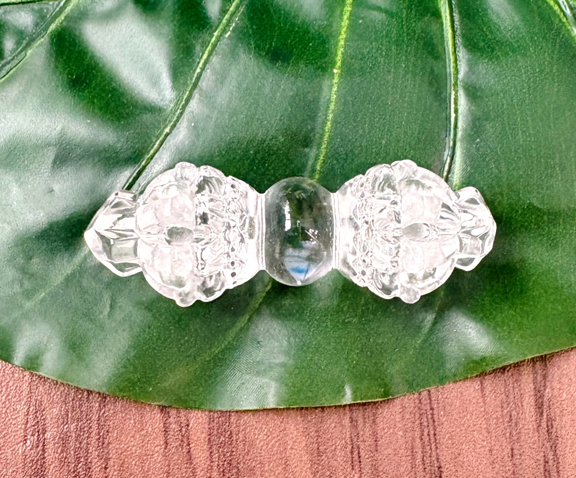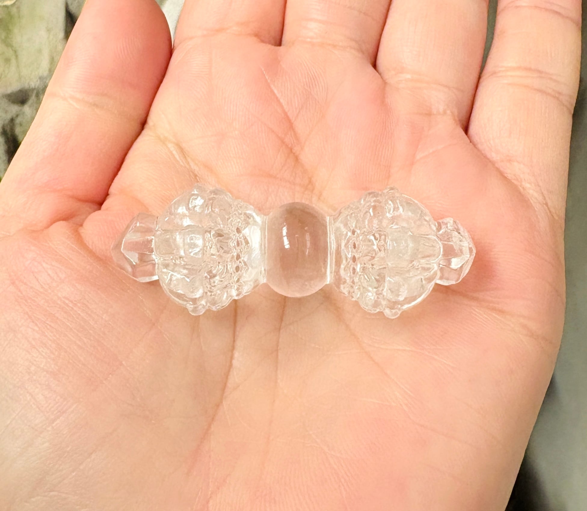 密教法具の五鈷杵(ごこしょ)が水晶に彫られている置物です。