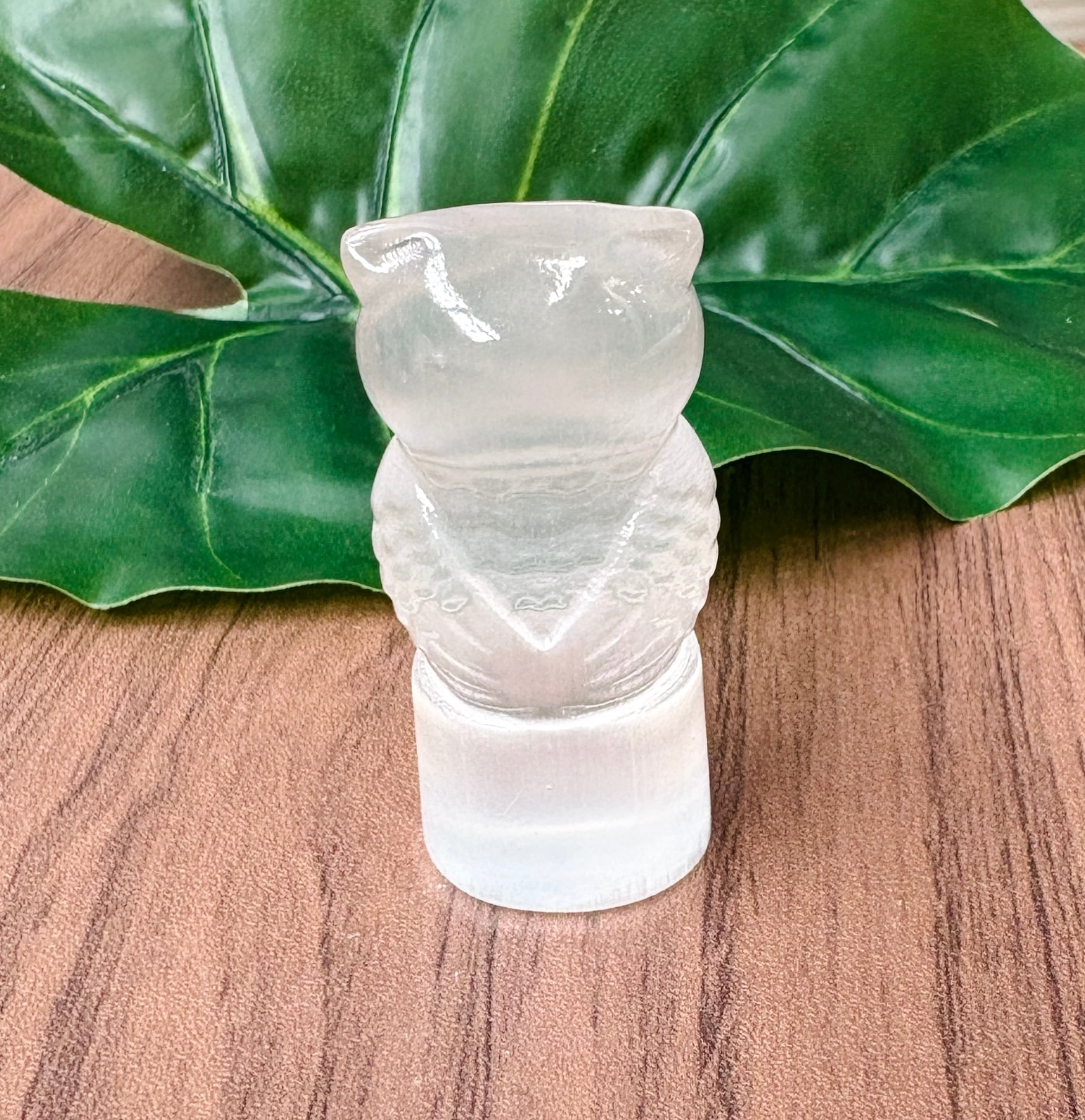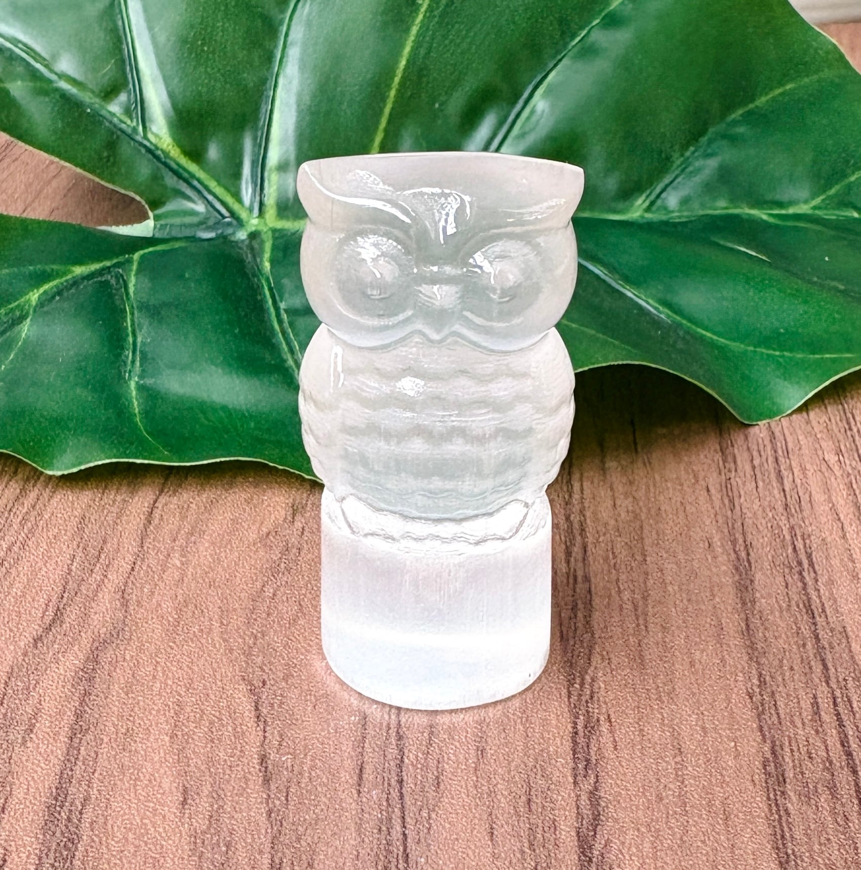 新着★強力な浄化!深い癒し!★聖母マリアのガラス★セレナイト★ふくろうミニ彫刻置物