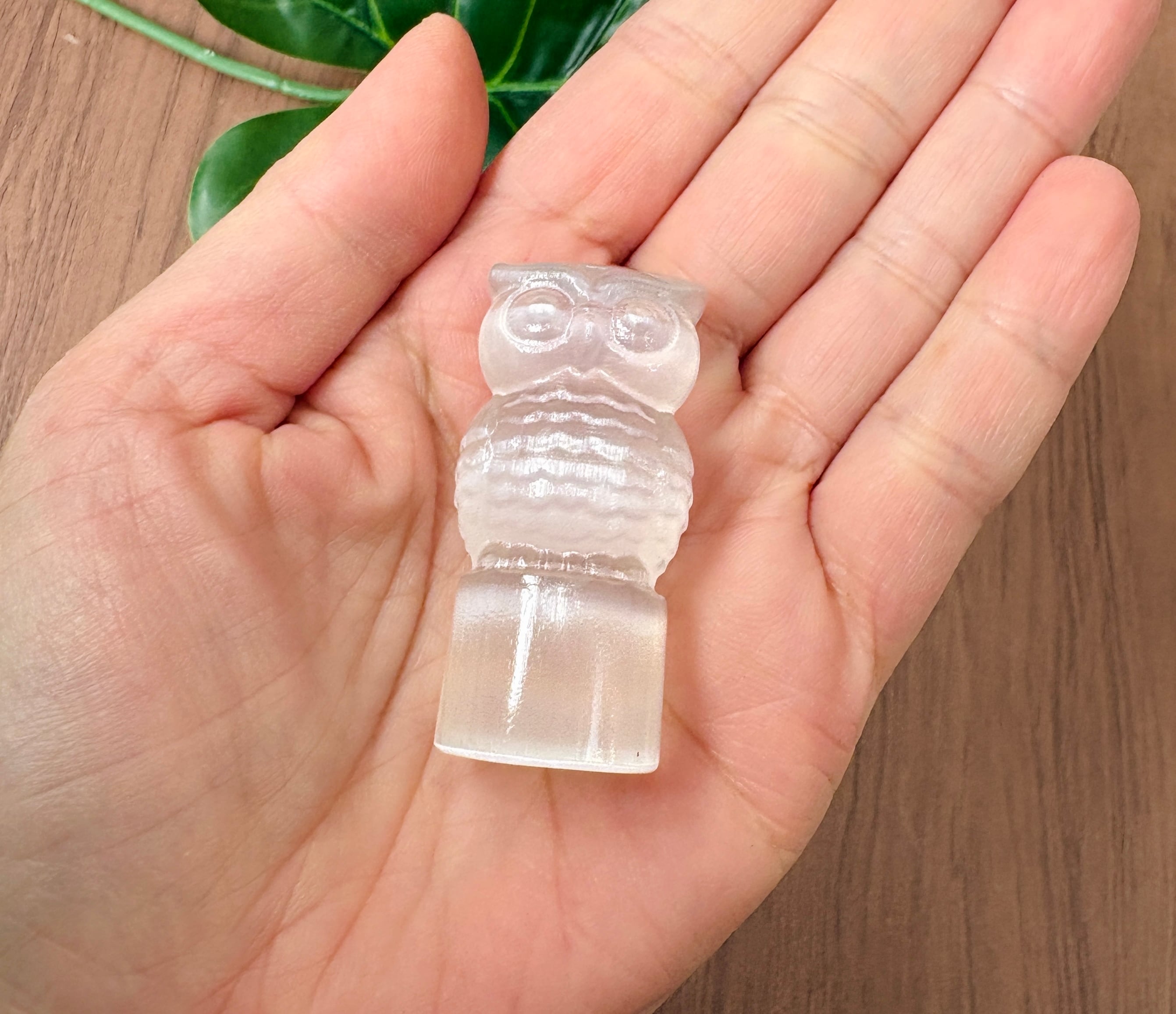 縁起の良いふくろうのセレナイト彫刻置物です。