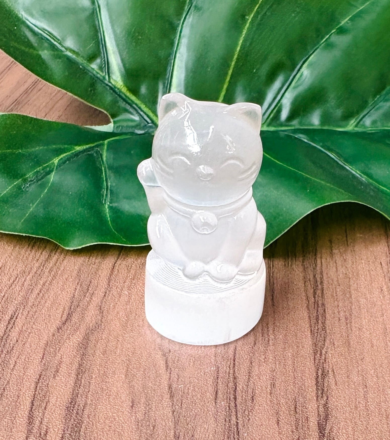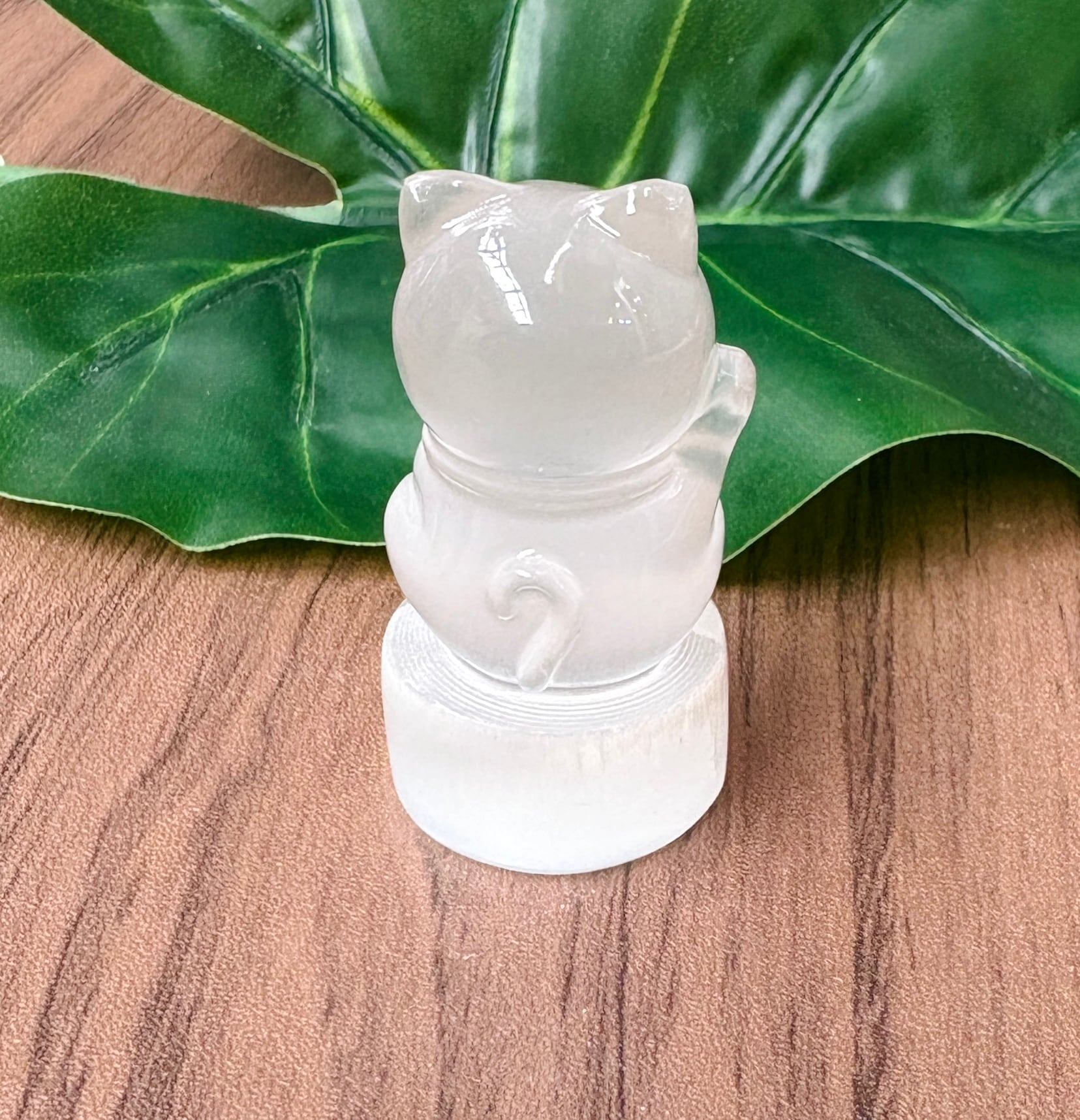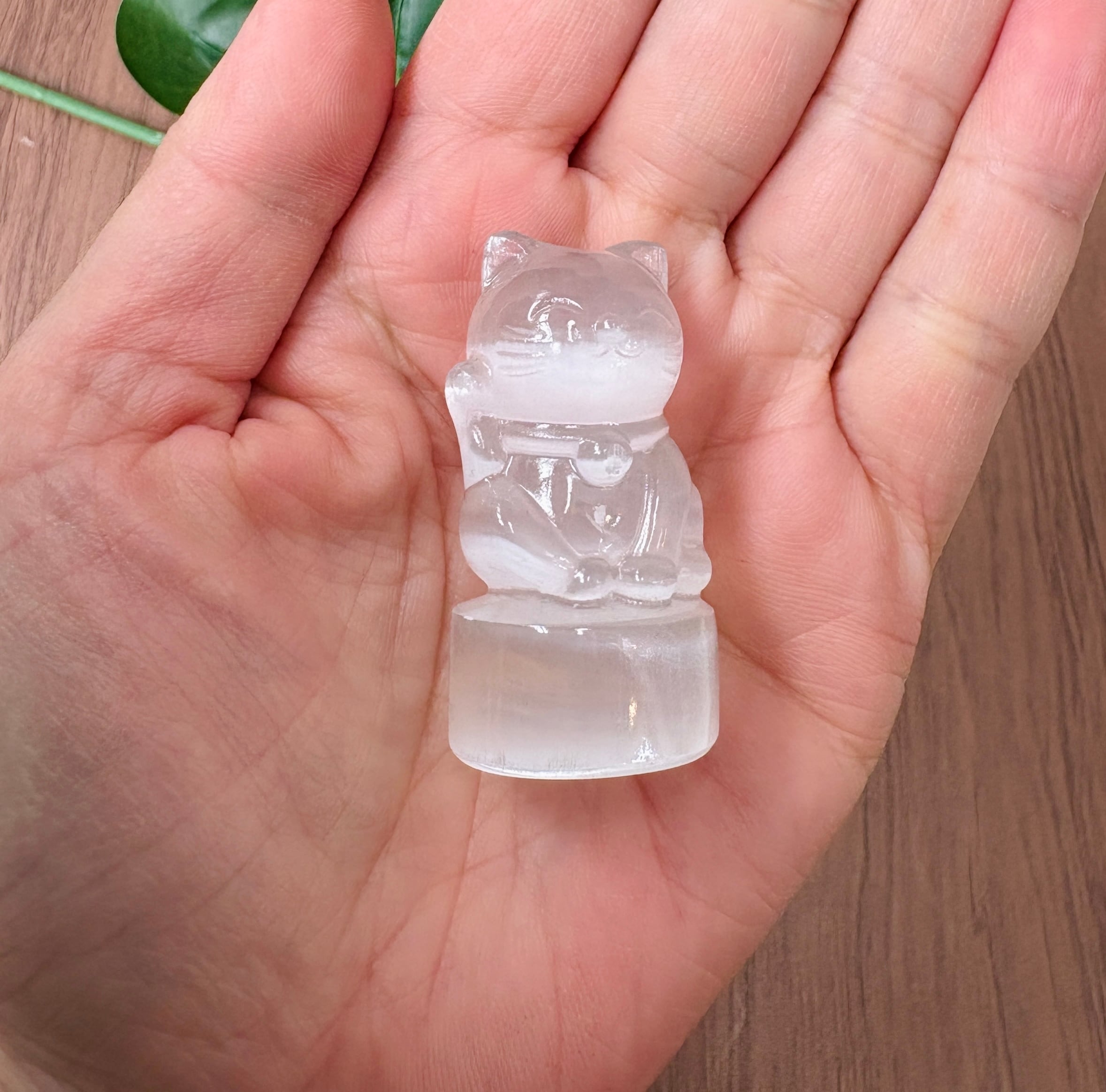 強力な浄化や癒し効果を持つ「セレナイト」の招き猫の置物です。