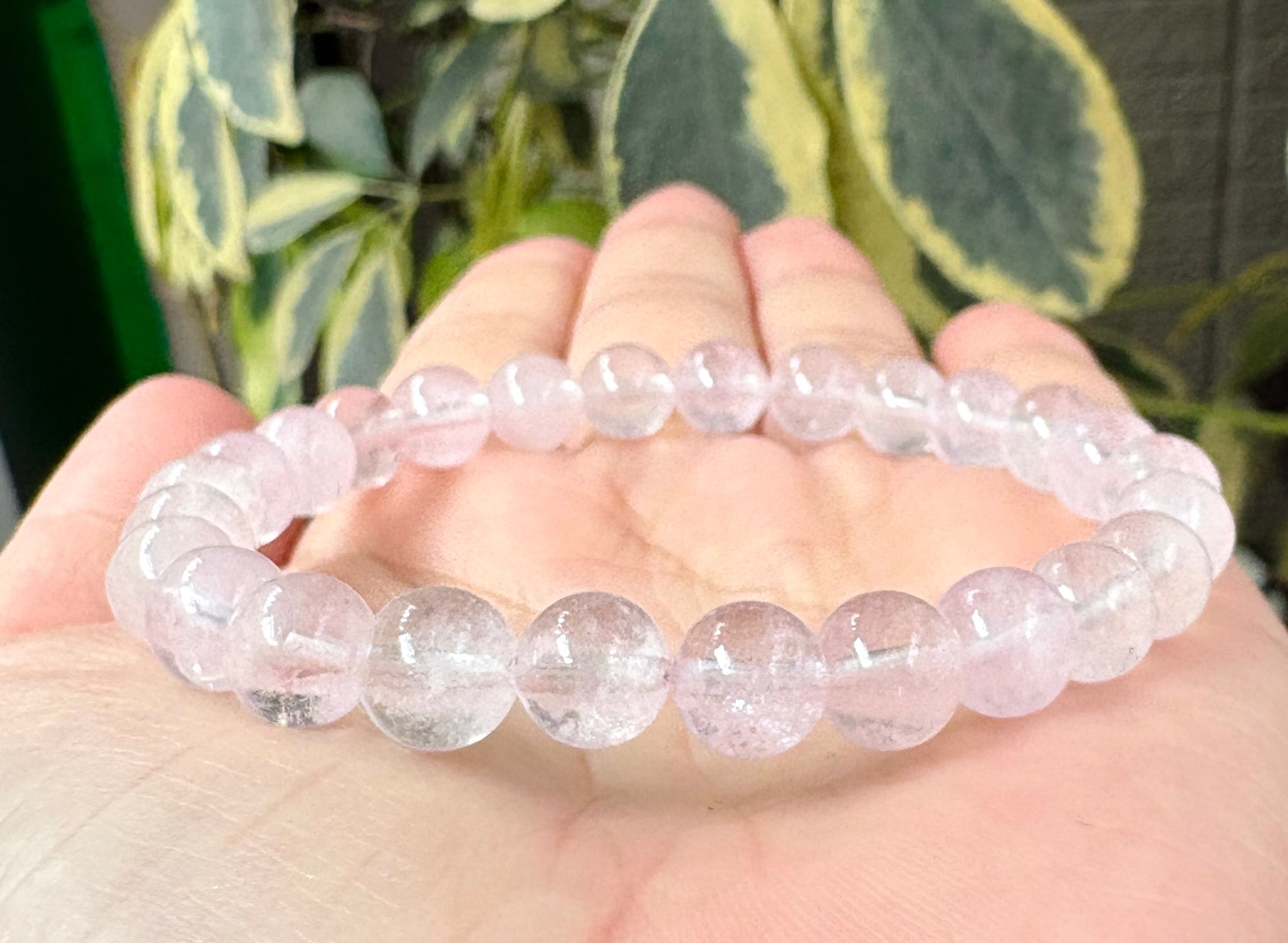 淡いピンクがとても可愛らしいモルガナイトのブレスレットです。