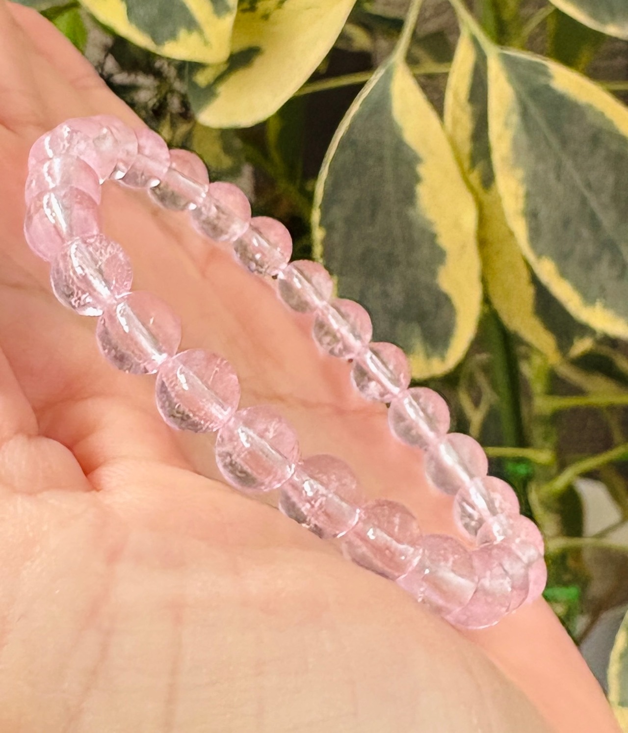 透明度抜群!淡いピンクがとても可愛らしい超高パワー!最高級インペリアルモルガナイトのブレスレットです。