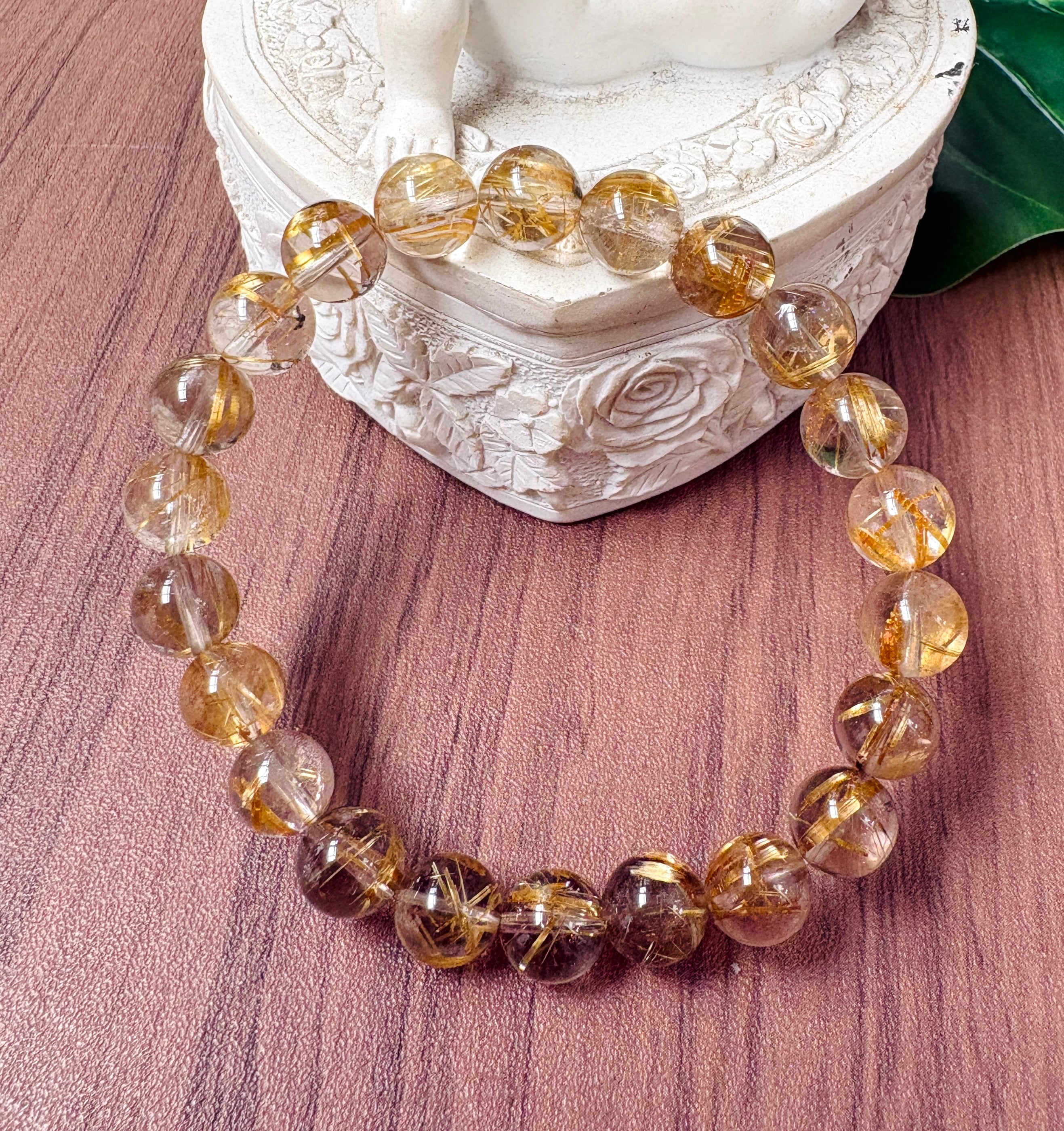 極太の黄金針が内包された超高パワー!極太タイチンルチルブレスレット9mm玉です。