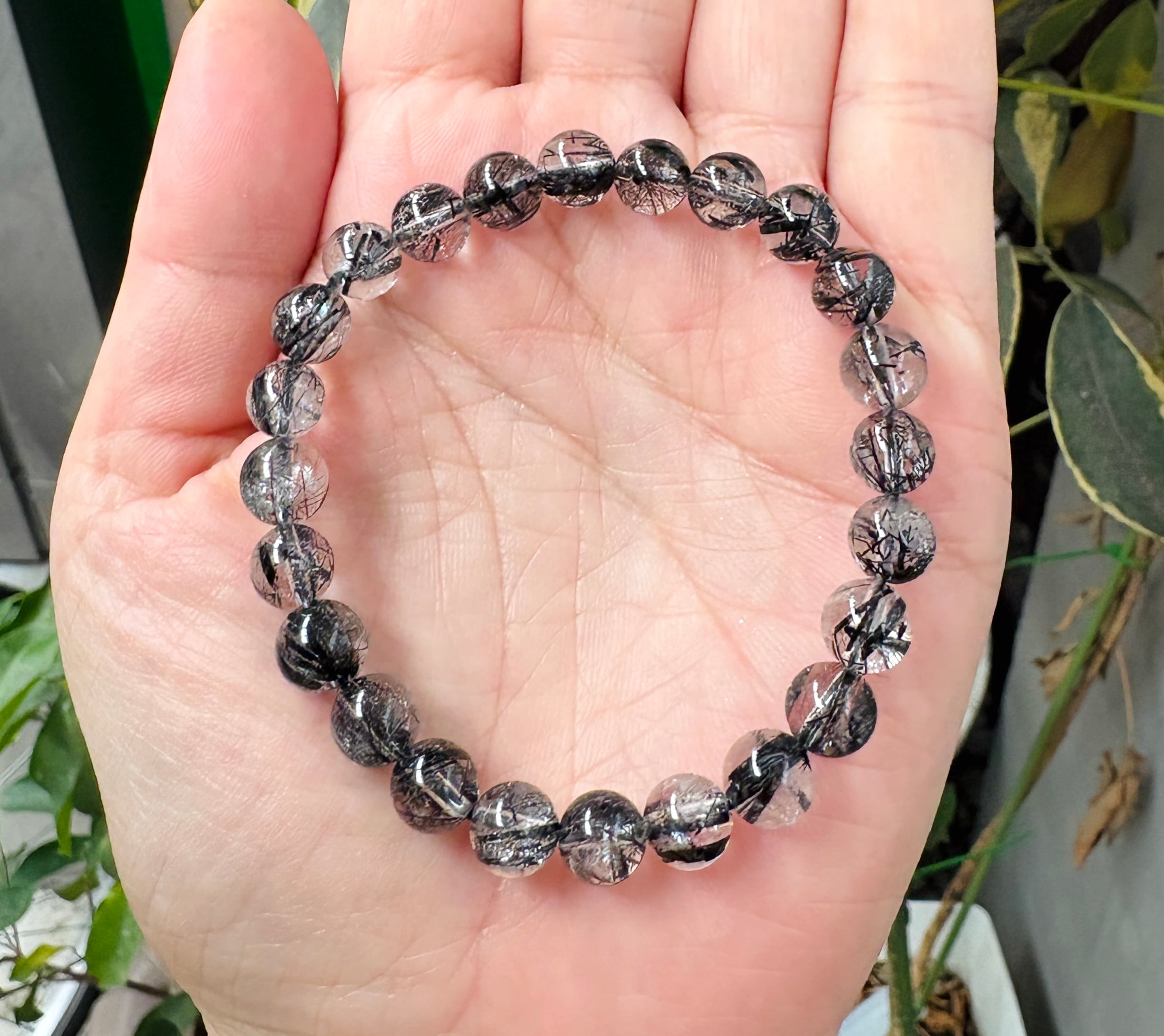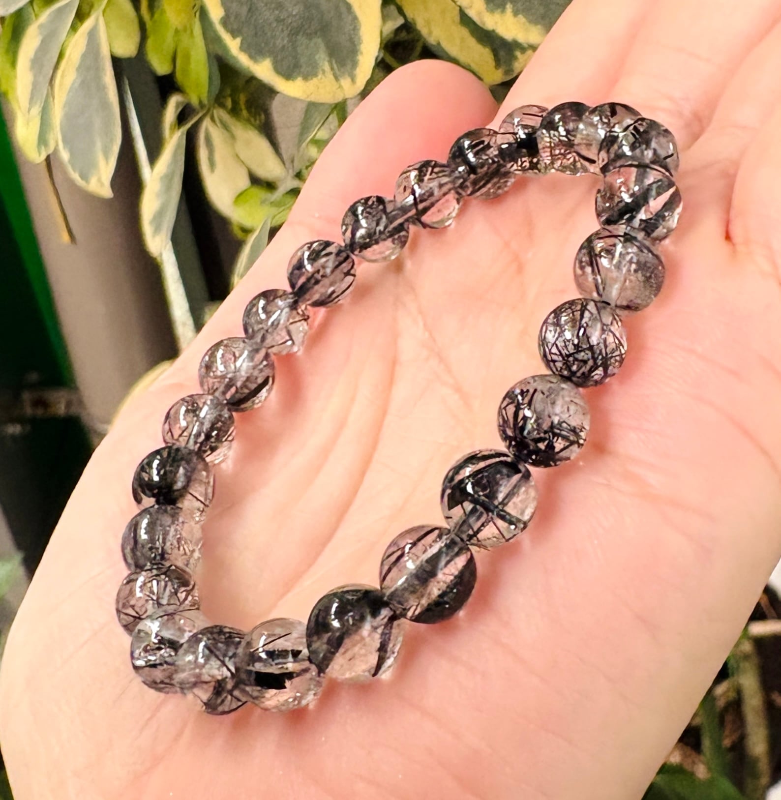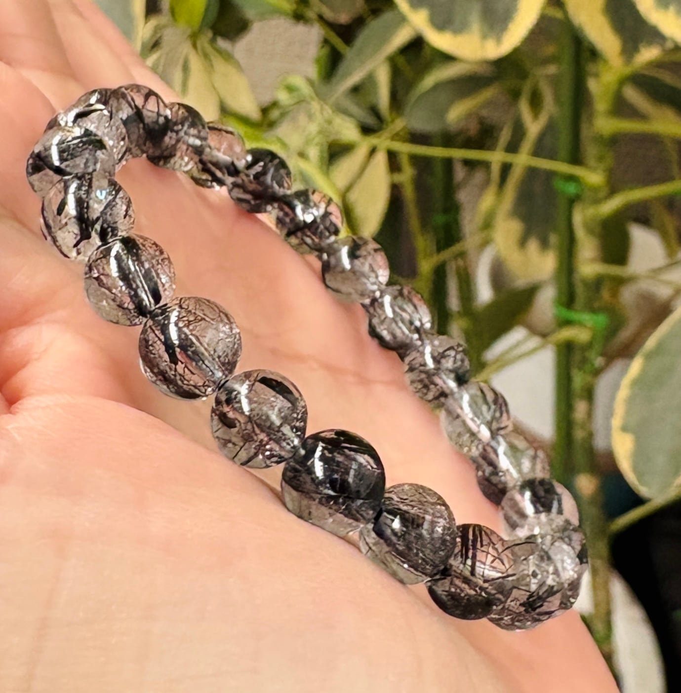 水晶にブラックトルマリンが入っているブラックトルマリンインクォーツのブレスレットを入荷しました!
