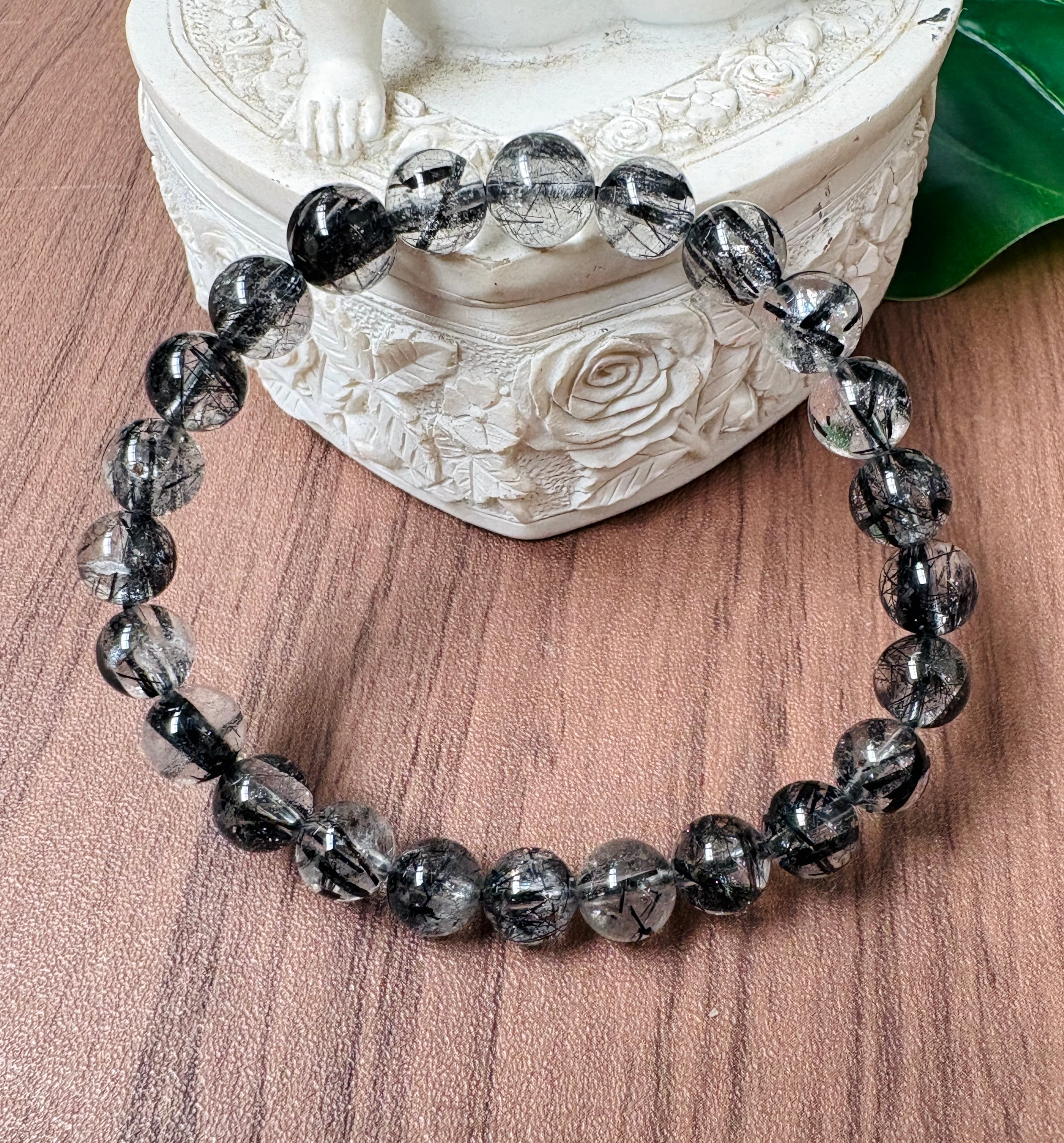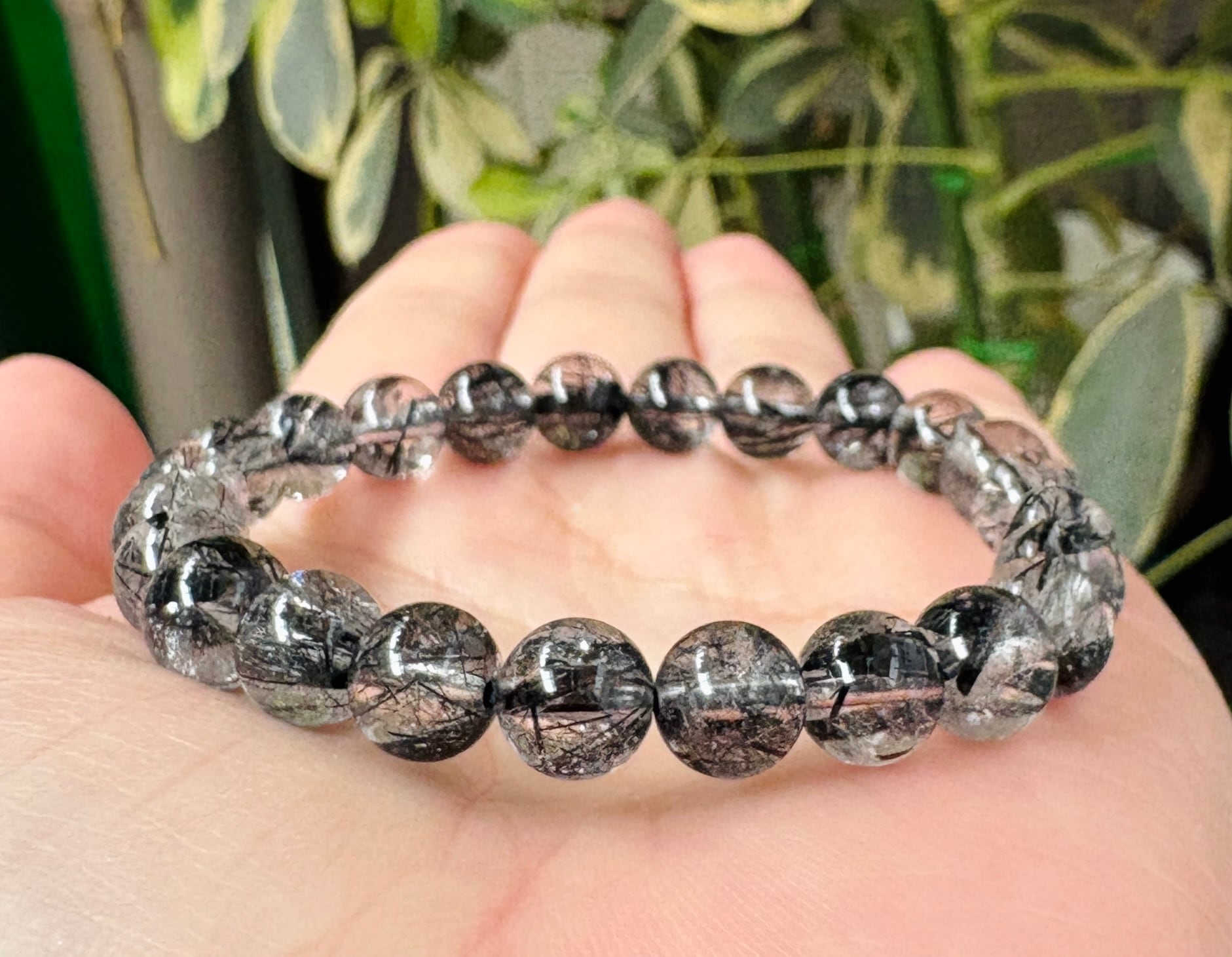 新着★魔除け!健康運UP!心身の浄化!★ ブラックトルマリンインクォーツ☆ブレスレット☆8mm玉