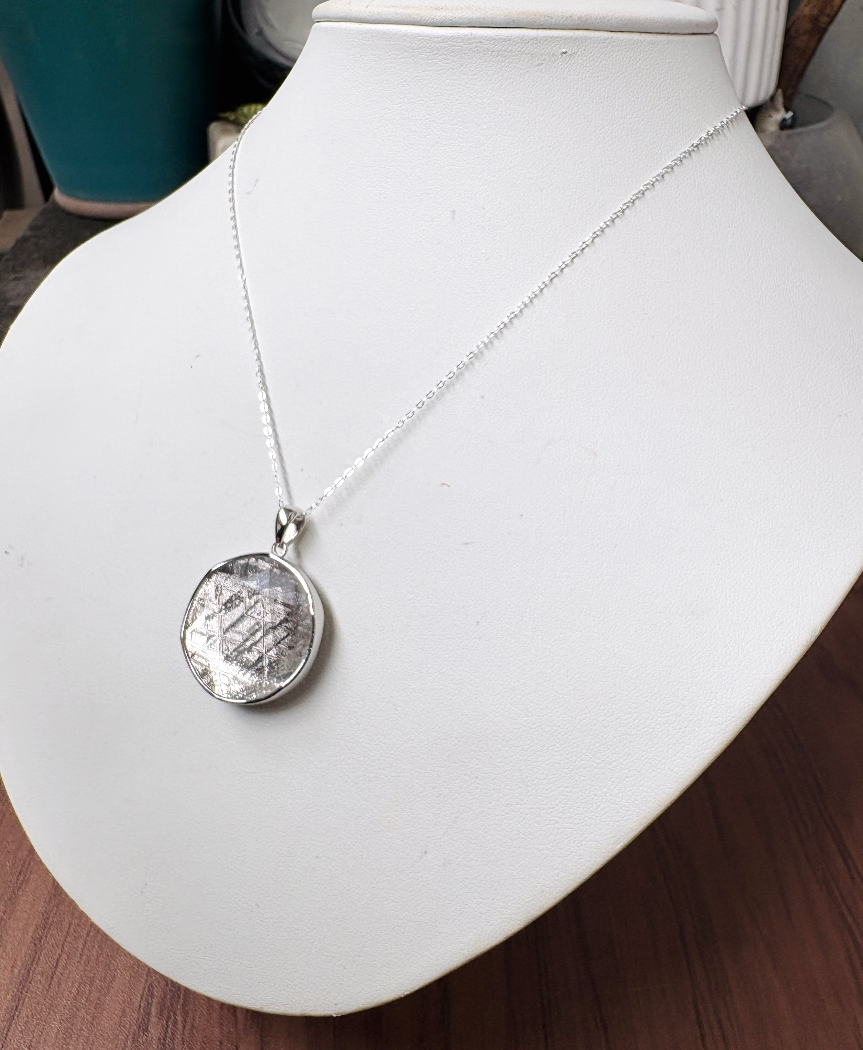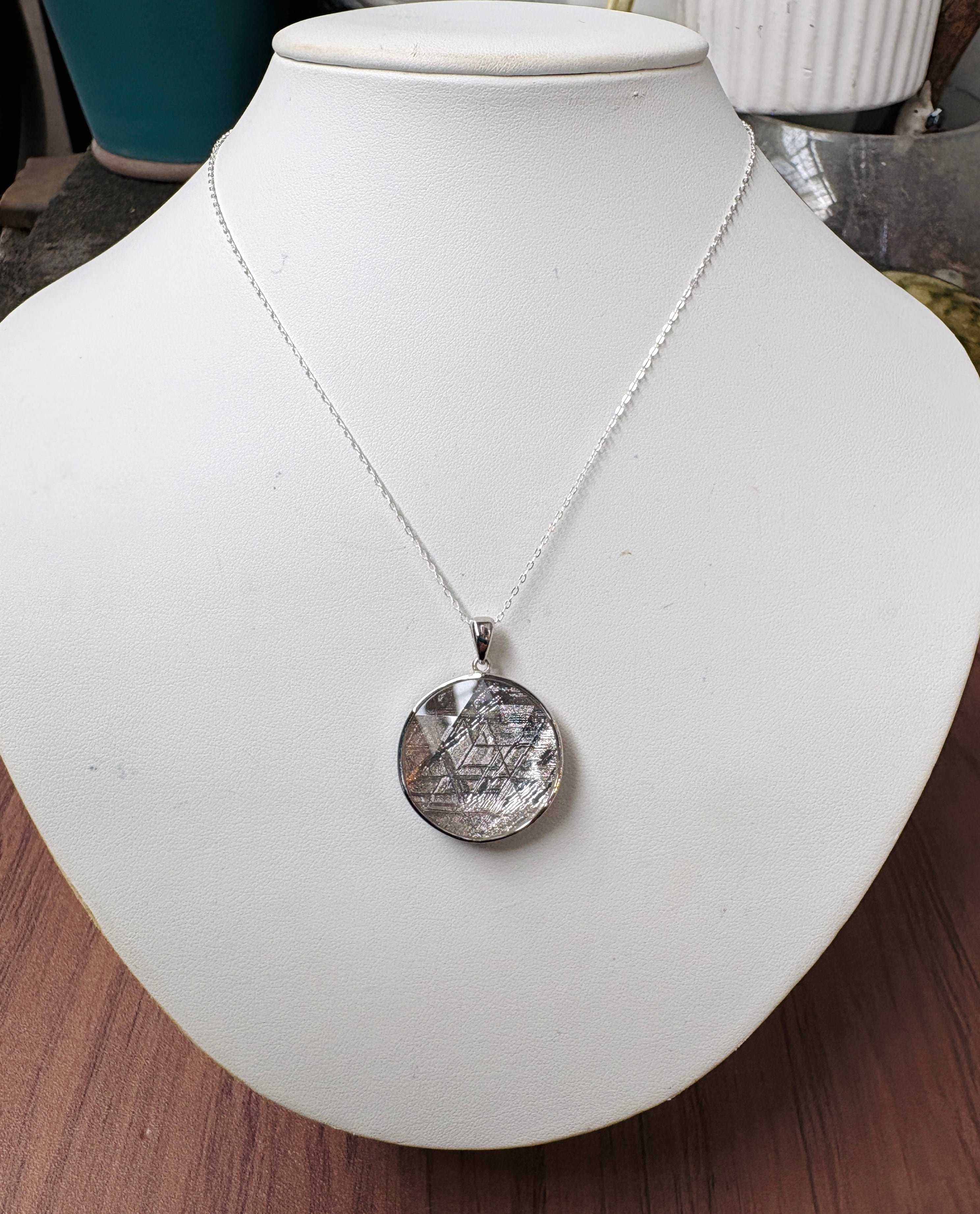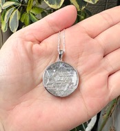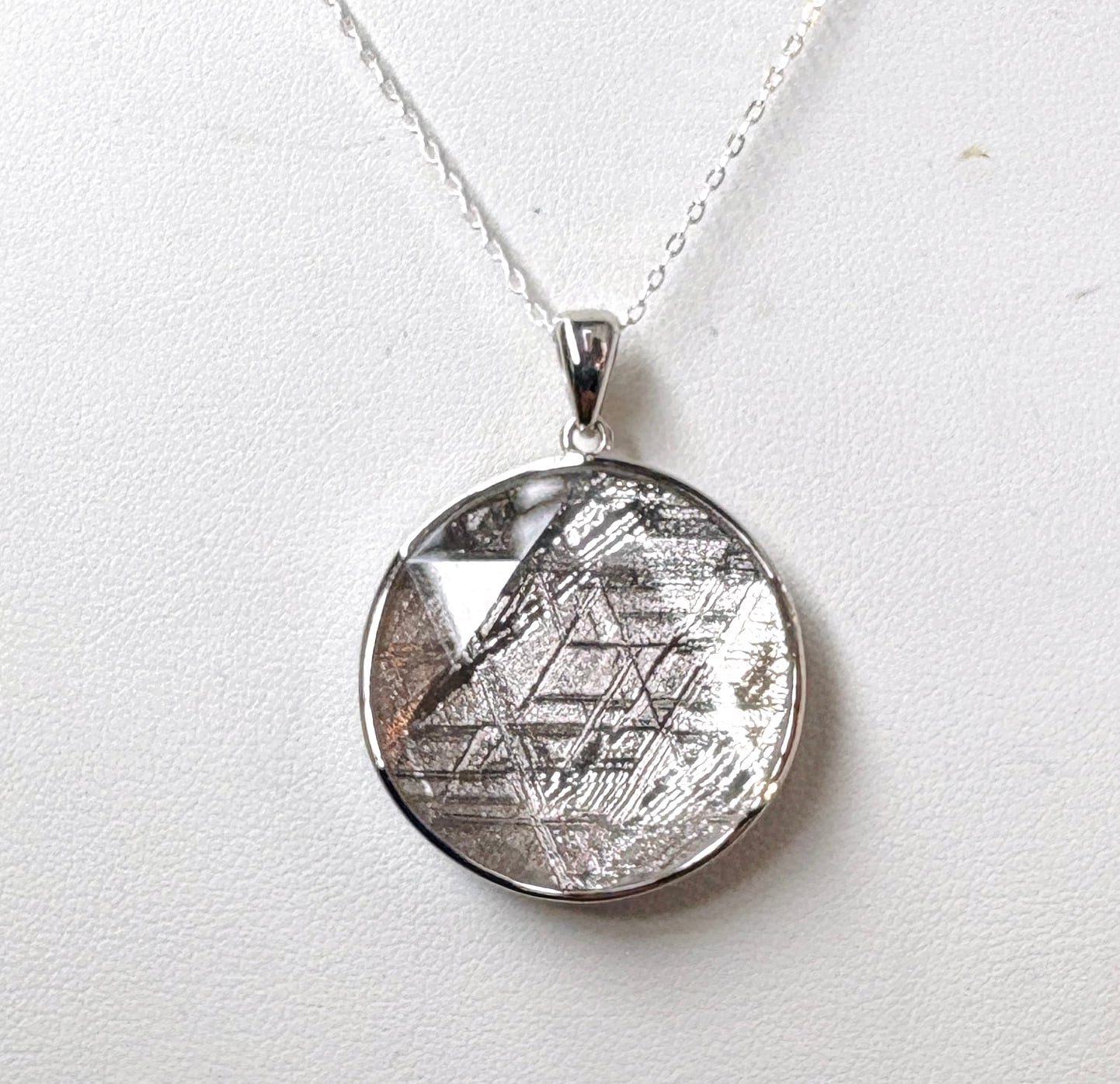 ギベオン隕石の両面に六芒星がカットされている高パワーペンダントトップです。