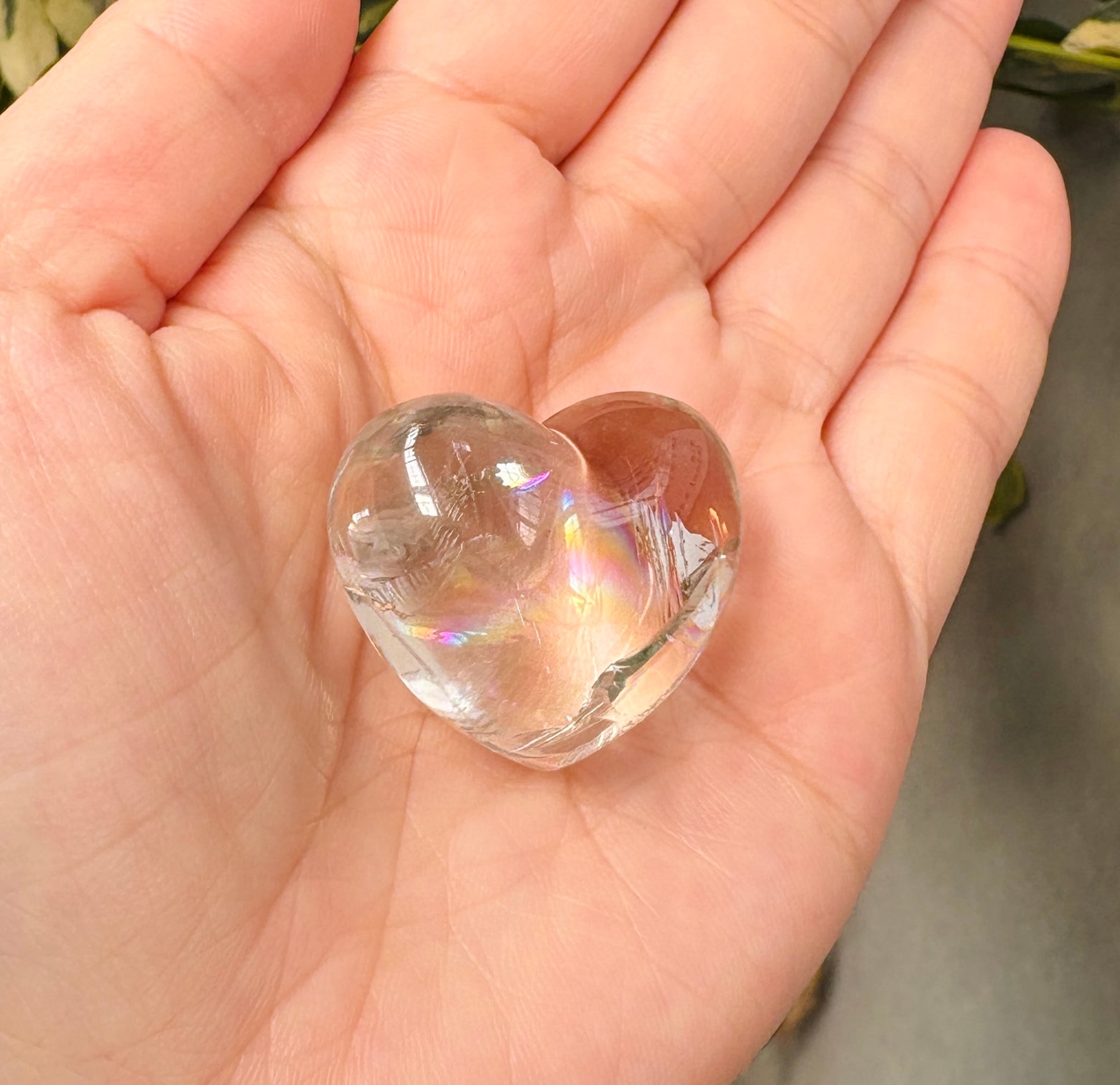 高パワー!アイリスクォーツ(虹入り水晶・レインボー水晶)のハート型タンブル1個です。