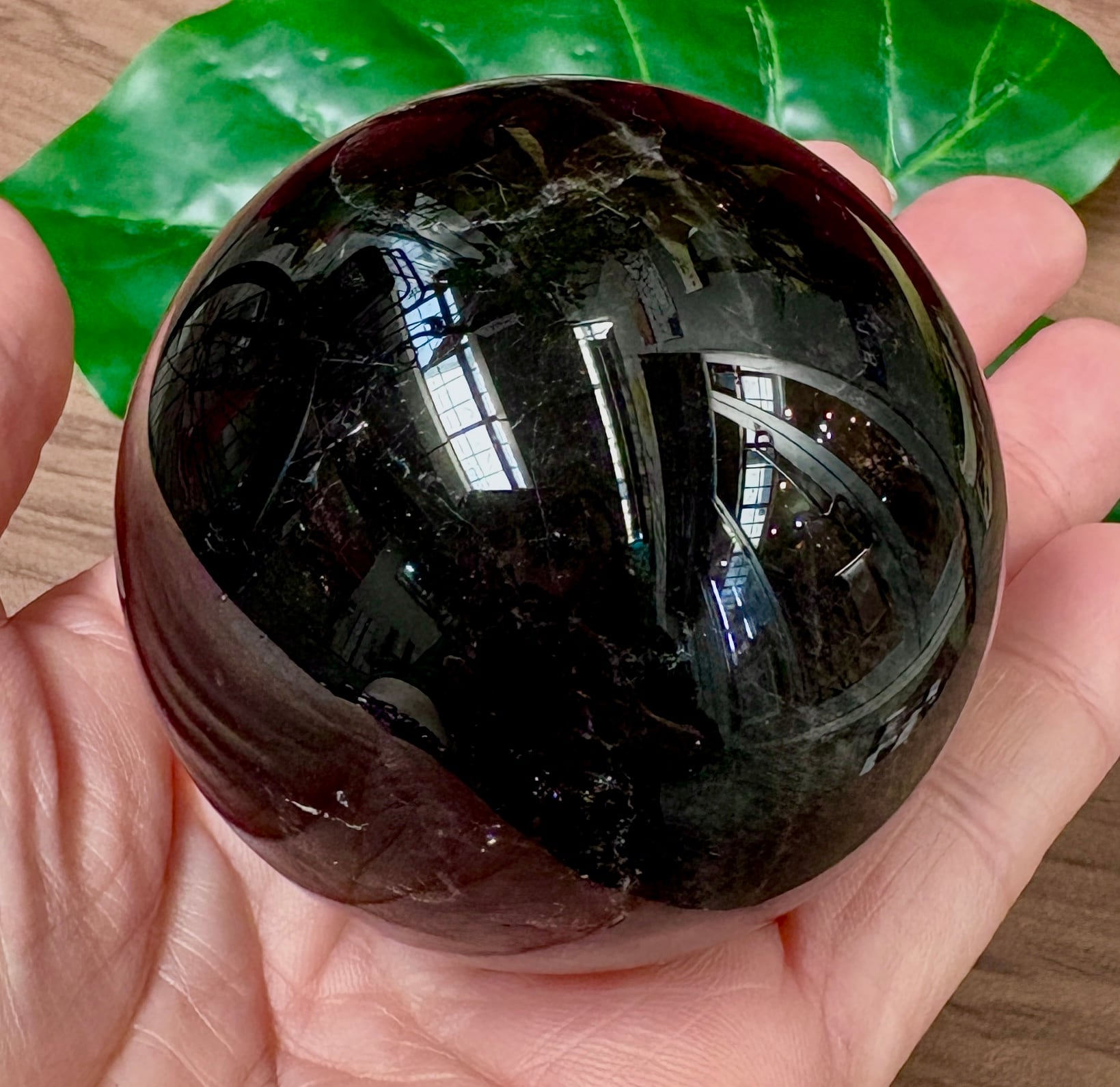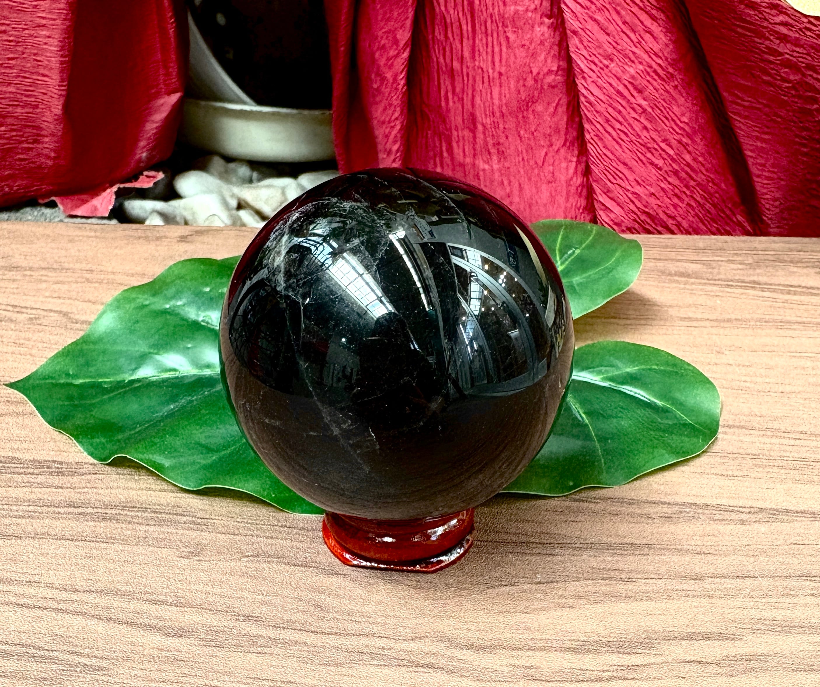吸い込まれそうな漆黒色の良質なモリオン(黒水晶)の丸玉です。