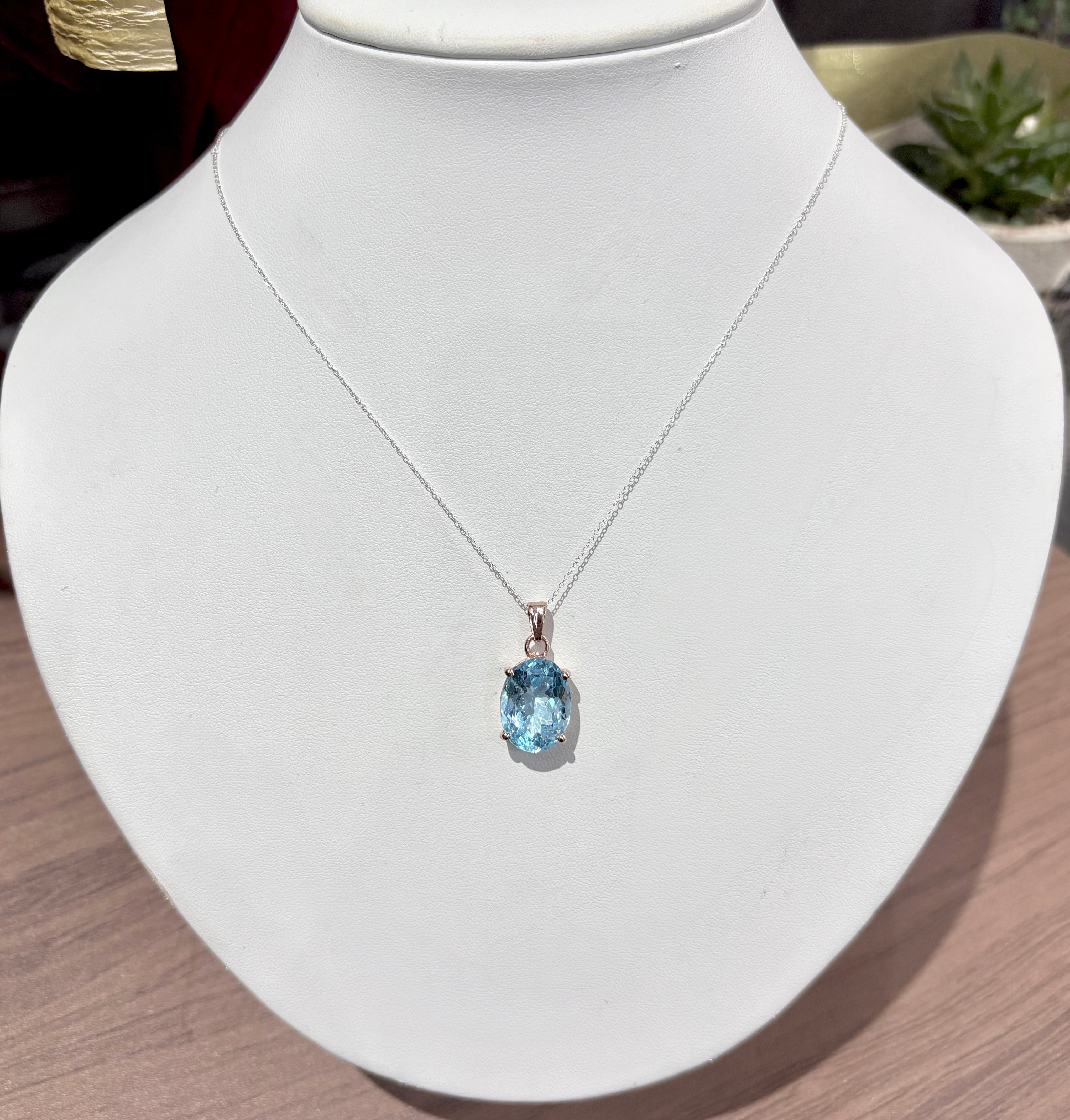 清涼感のある鮮やかな濃い水色が大変美しい透明度の高いブルートパーズのペンダントトップが入荷しました!