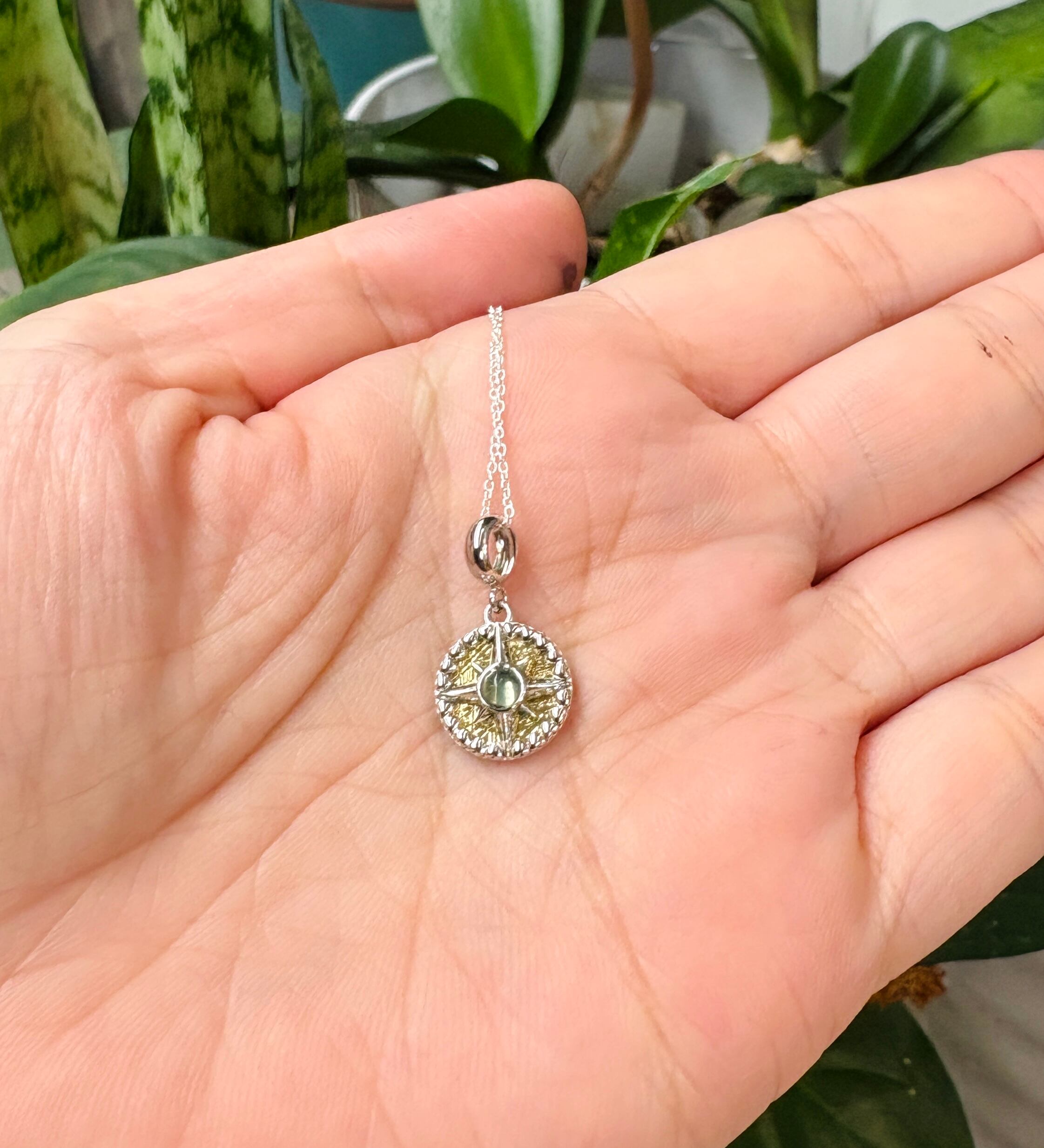 真ん中には小さなモルダバイトがついてます。