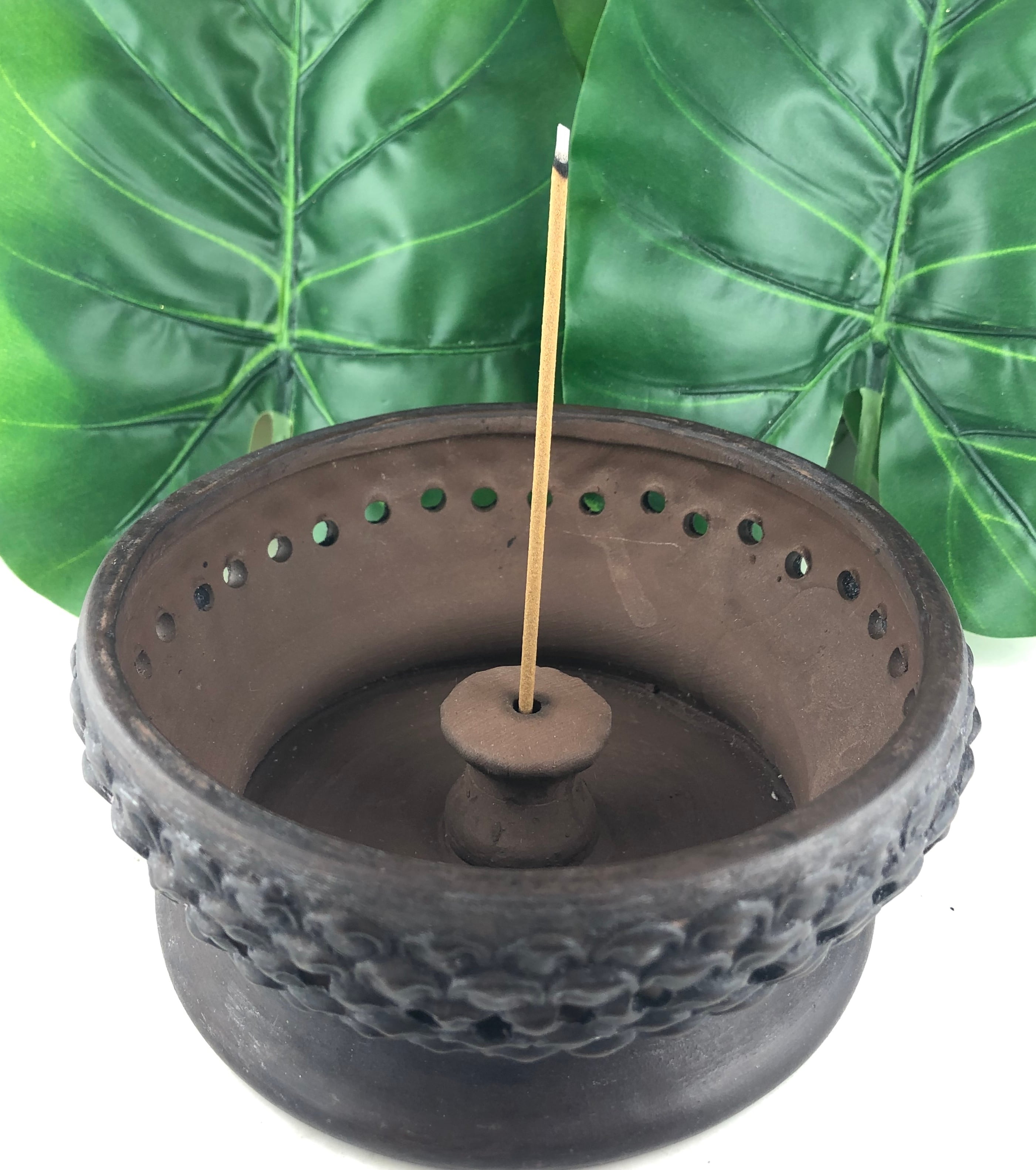 内部にお香立てがついており、棒状・円すい型どちらのお香もセットしていただけます。