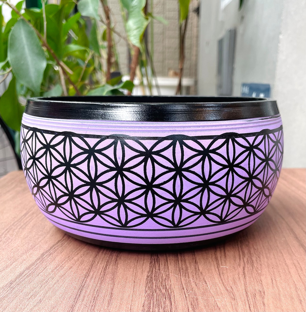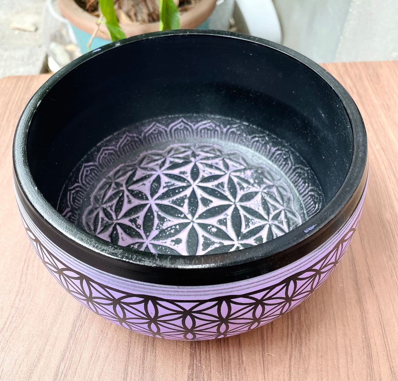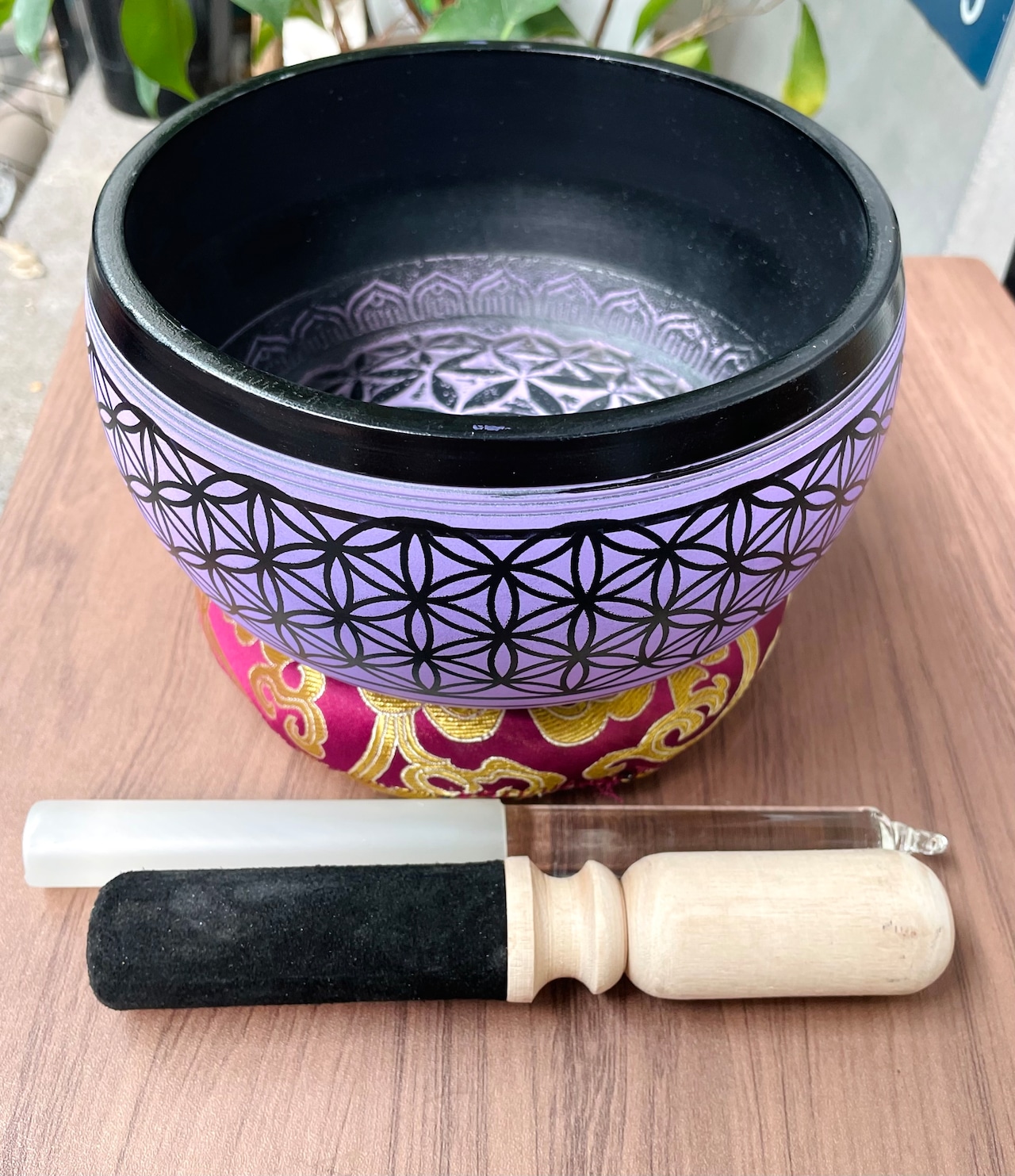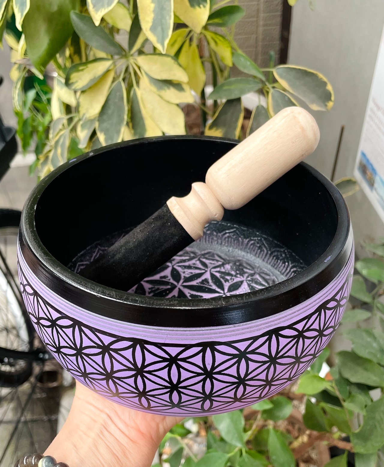 新着★超お買い得!!数量限定★チャクラ活性化!心身の浄化!★フラワーオブライフ★シンギングボウルセット★パープル