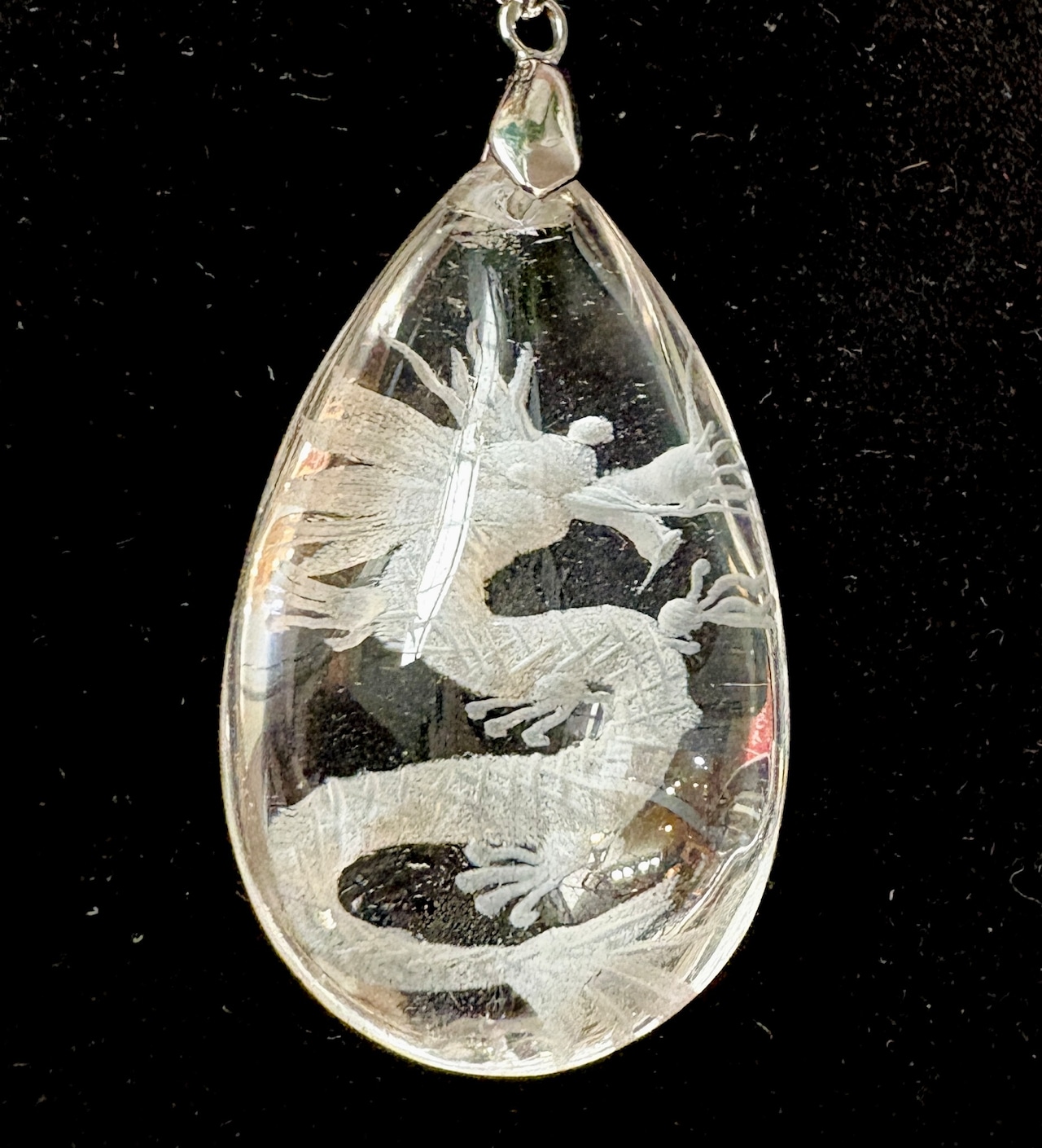 新着★開運!邪気避け!★水晶☆龍裏彫り☆ペンダントトップ