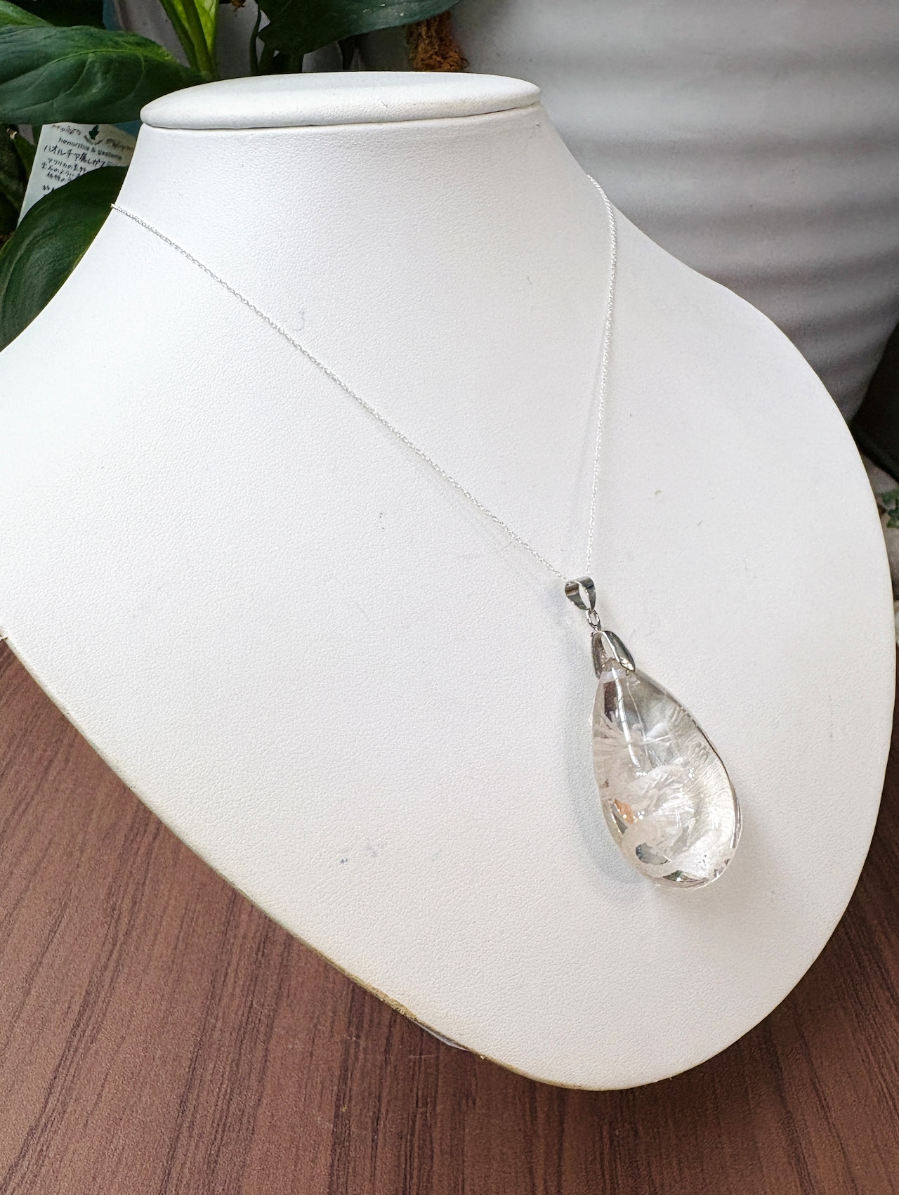 透明度抜群の水晶に迫力のある龍が裏彫された超パワフルなペンダントトップです。チェーン別売