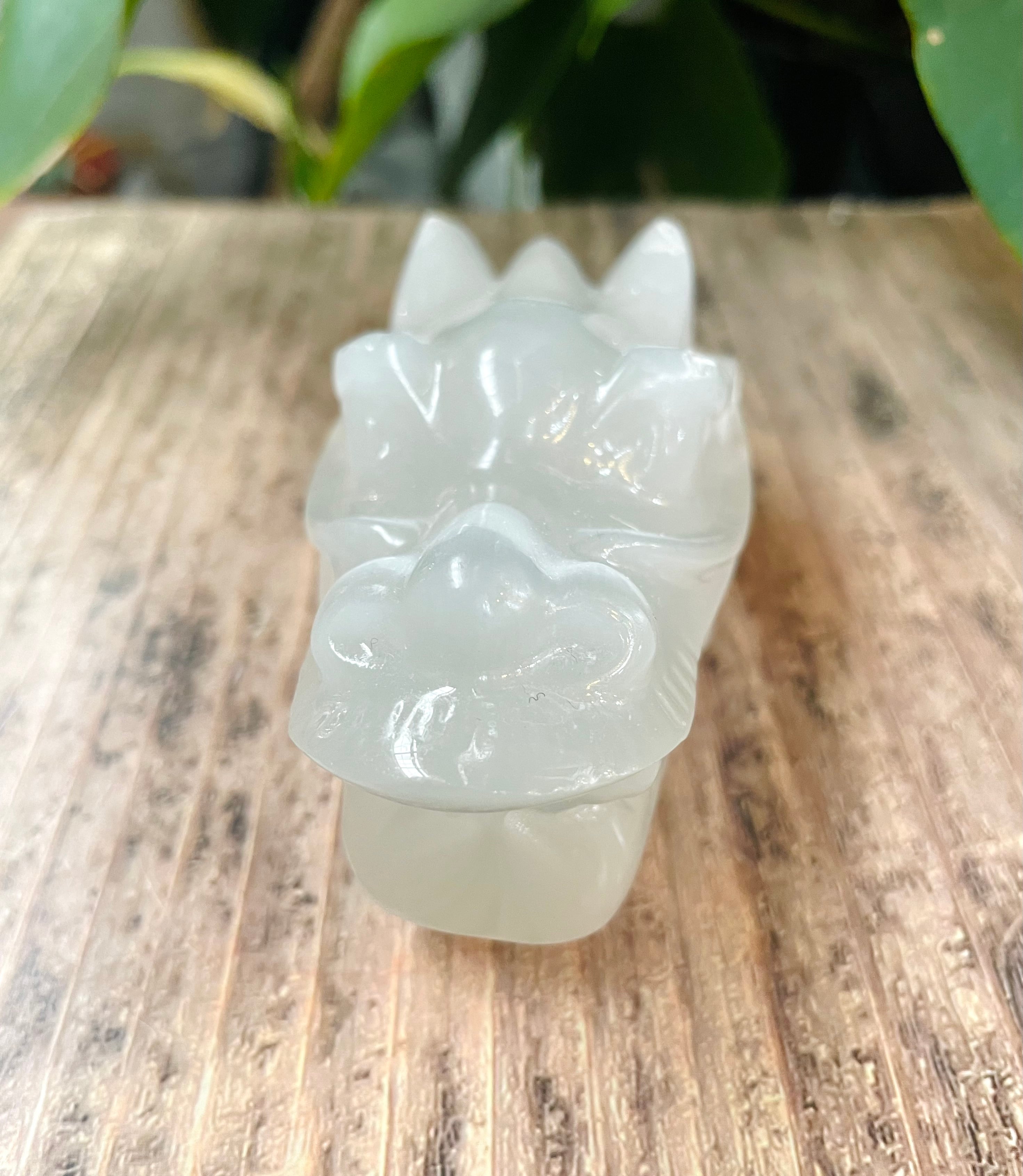 強力な浄化や癒し効果を持つ「セレナイト」の龍頭置物です。