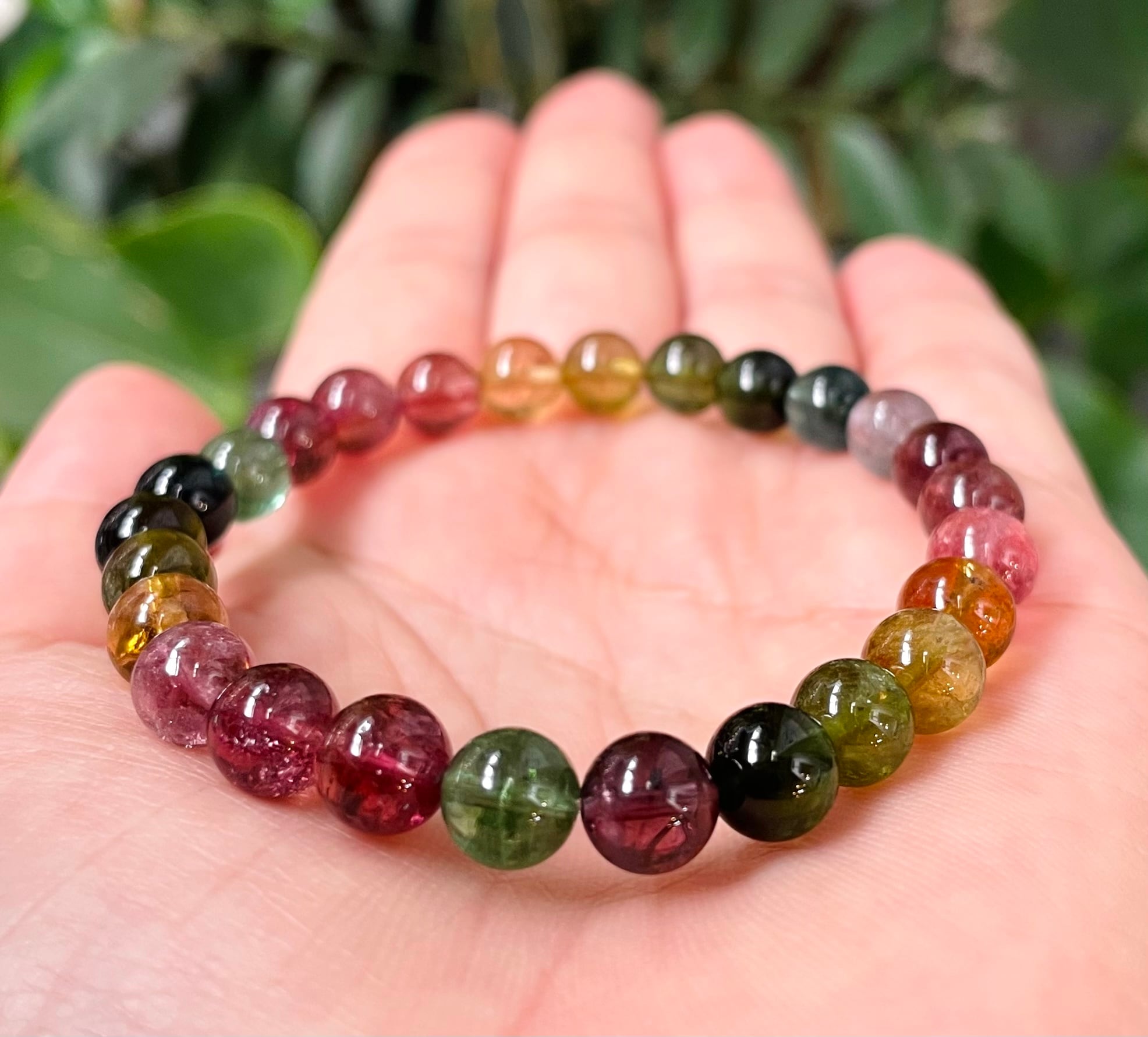 新着★精神安定!ストレスやイライラの緩和に!☆最高級ミックストルマリンブレスレット☆7mm