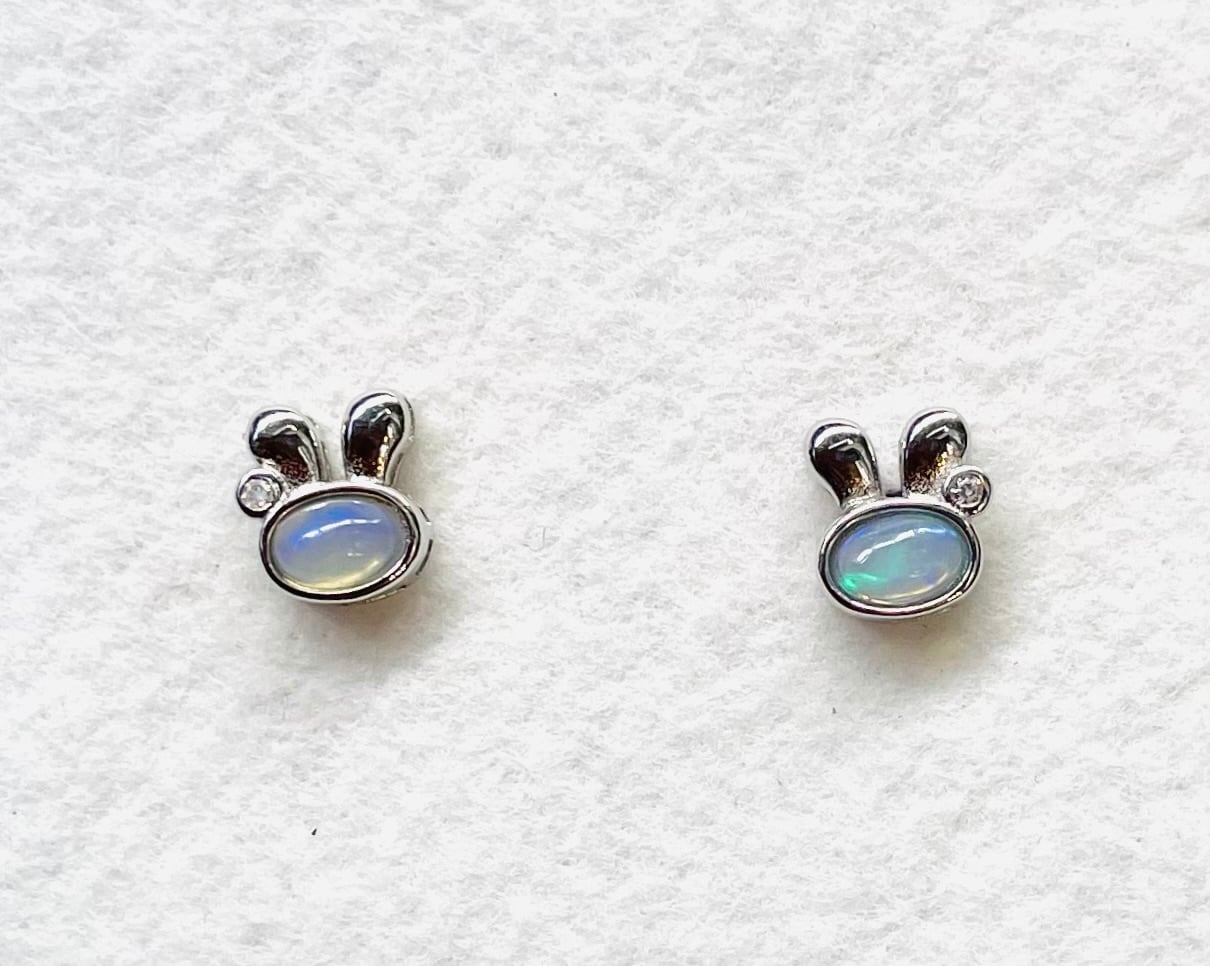 小さいながらも遊色効果と呼ばれる、虹のように七色に光る、とても美しいプレシャスオパールのうさぎモチーフピアスです。