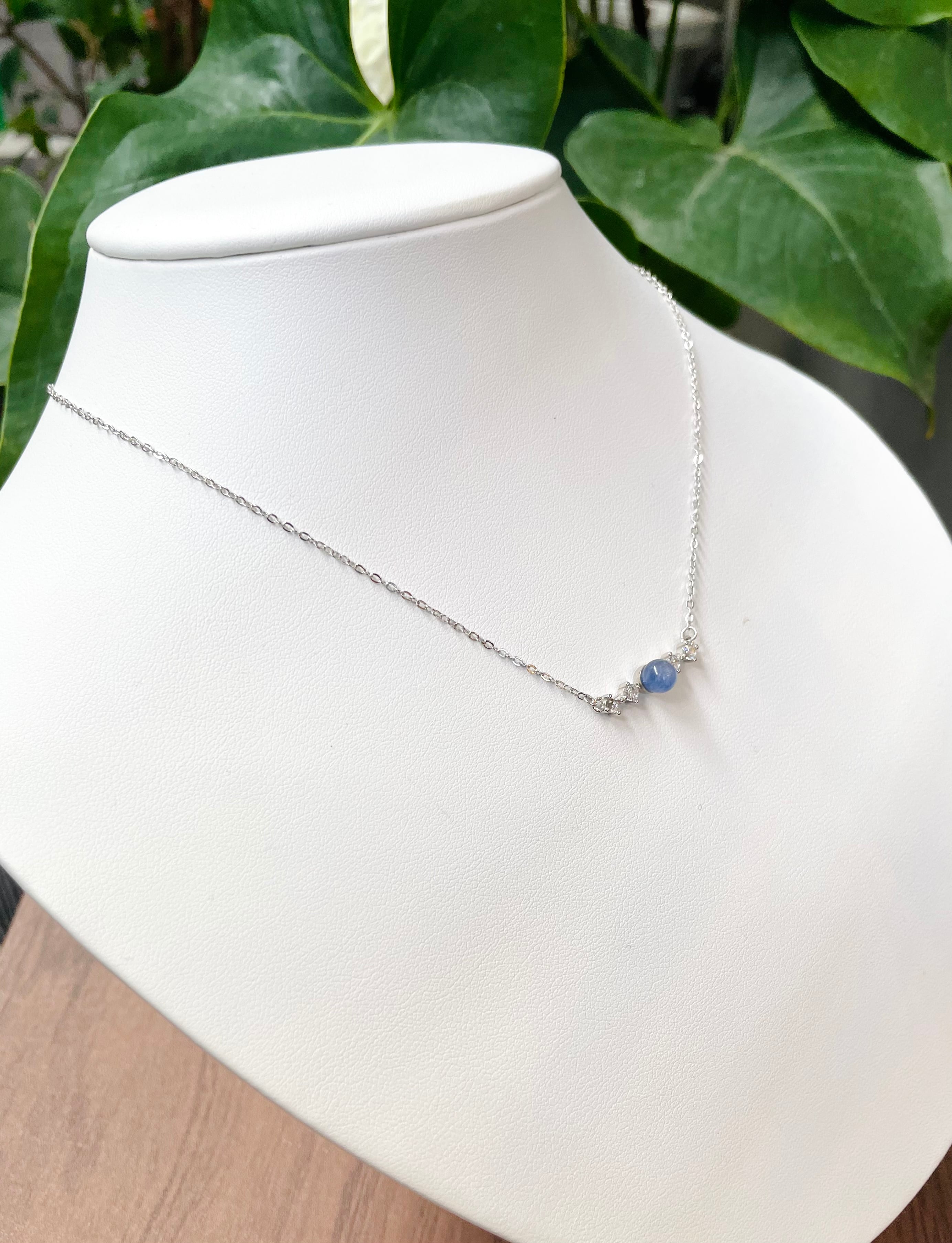 透明度が高い天然水晶に、独特の深い藍色が印象的なデュモルチライトインクォーツのペンダントです。
