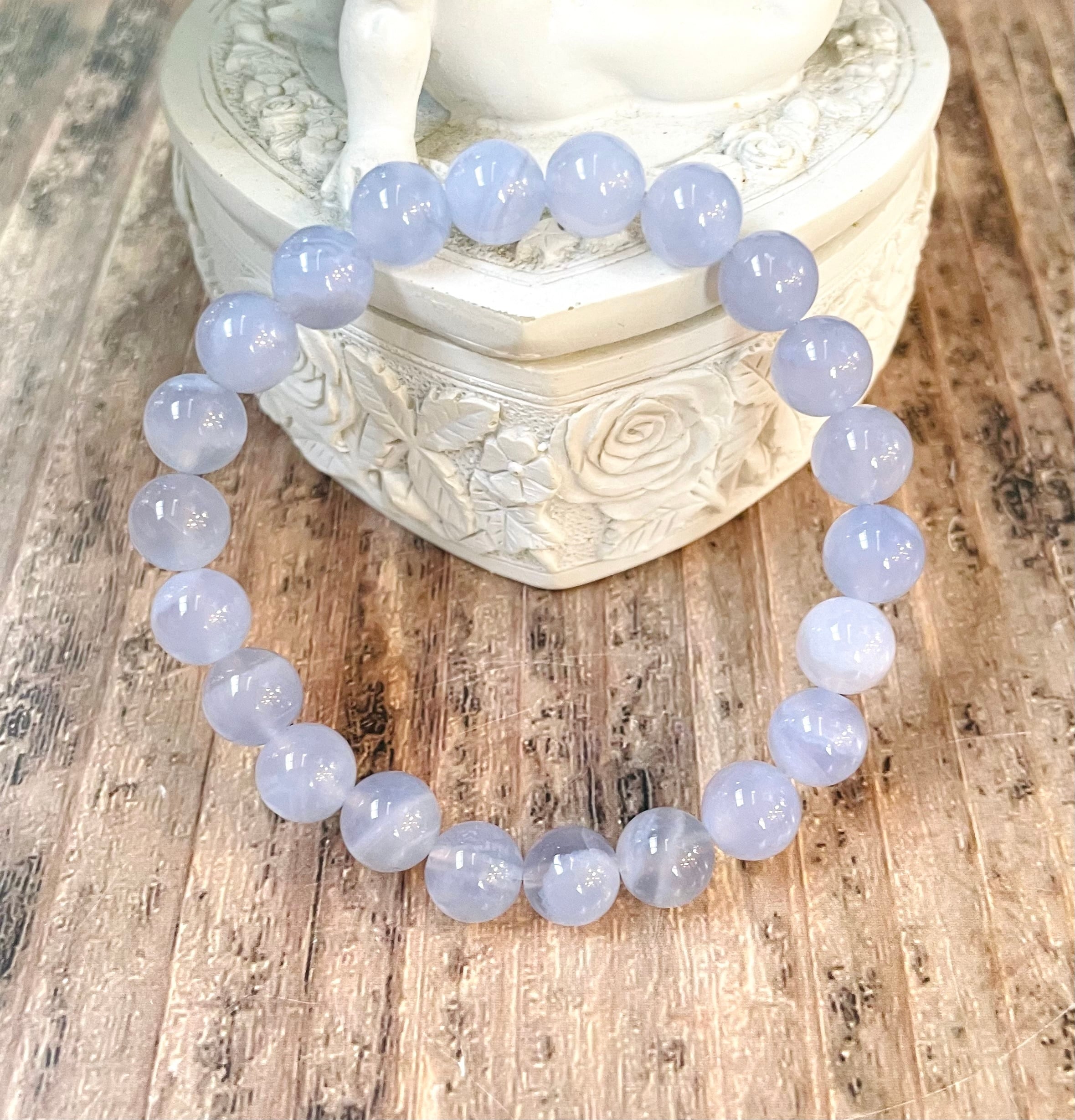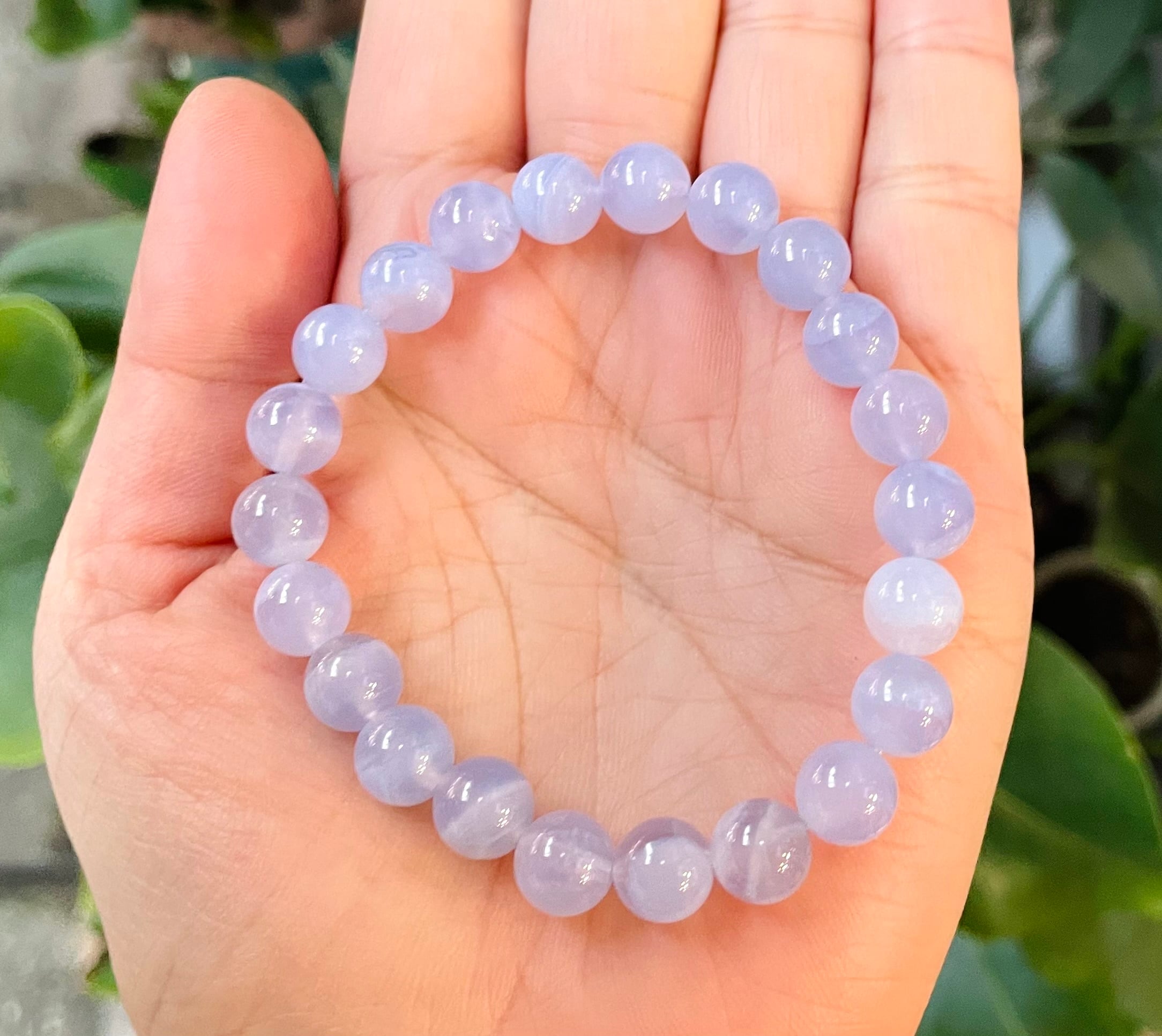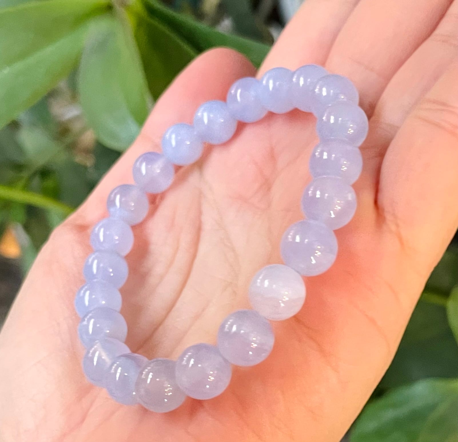 見ているだけで癒しになる天然ブルーカルセドニーのブレスレットです。