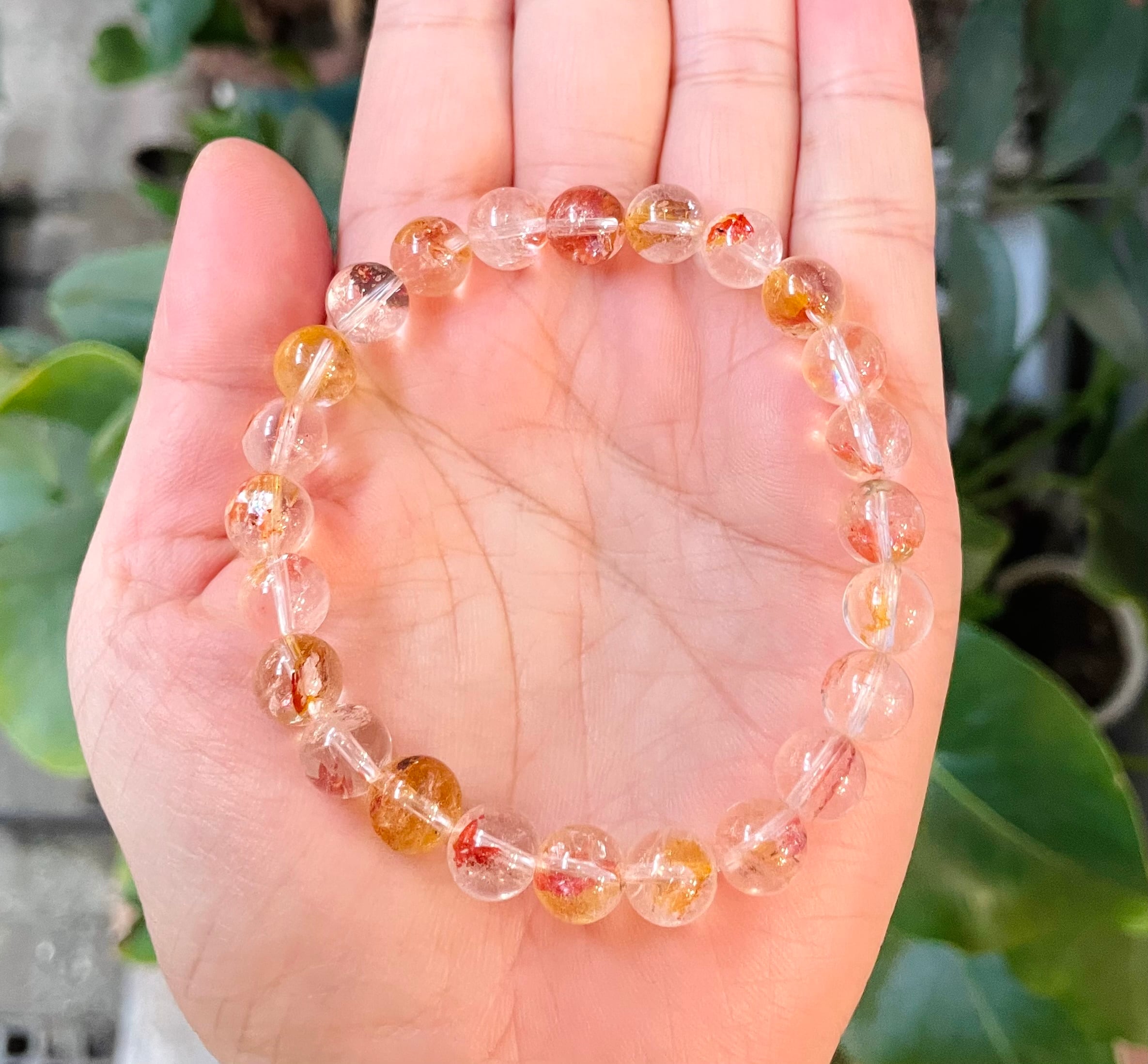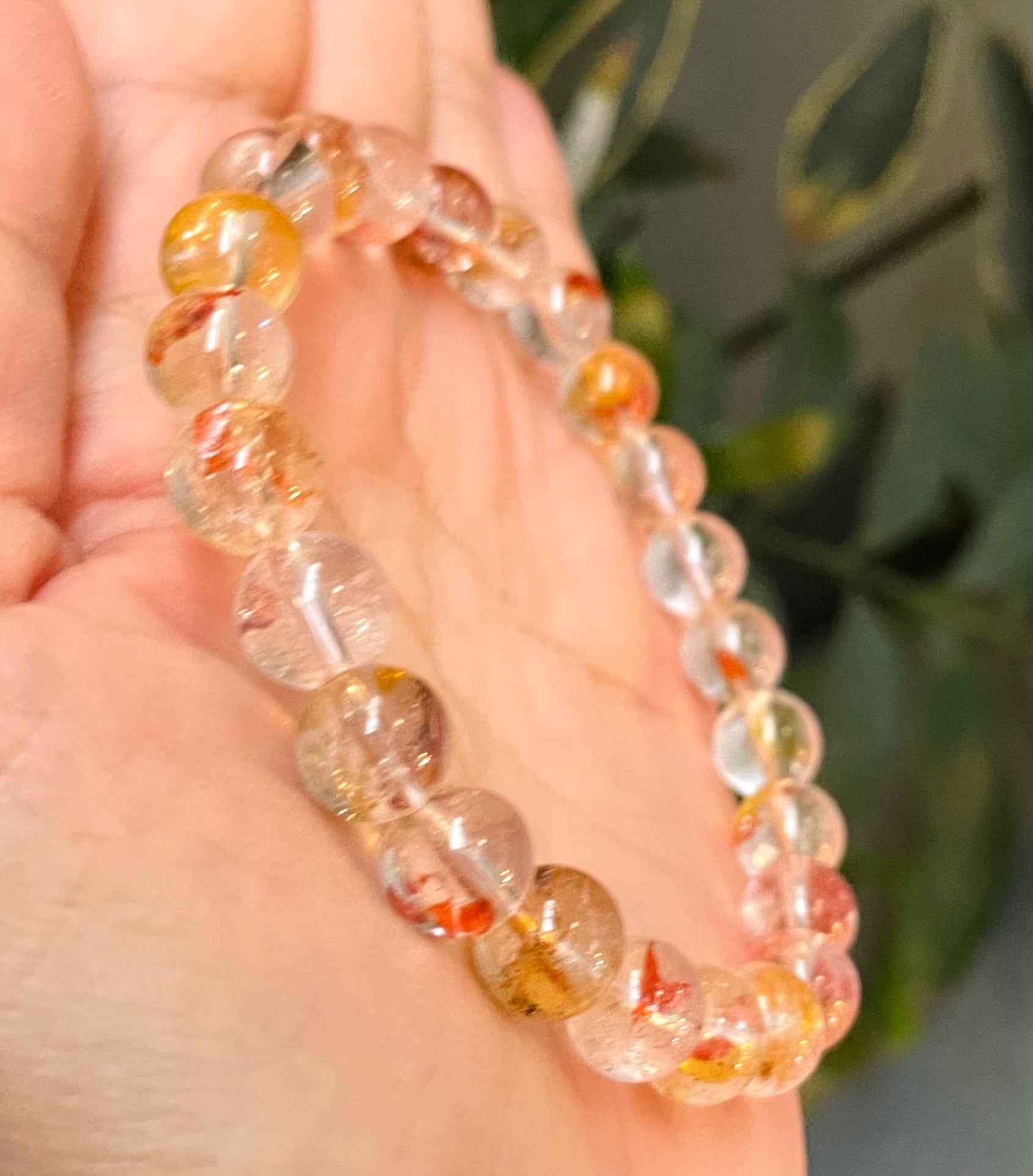 模様がまるで水中で泳ぐ錦鯉かのように鮮やかで大変美しいオーラクォーツ(錦鯉水晶)のブレスレットです。